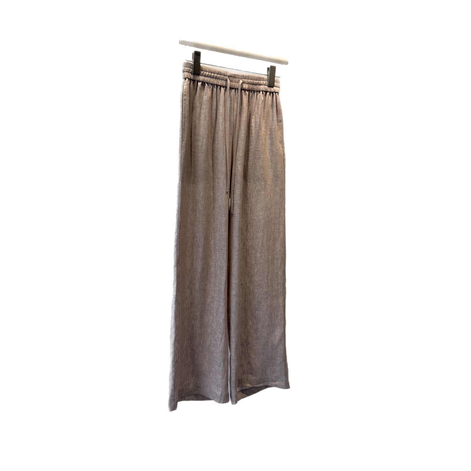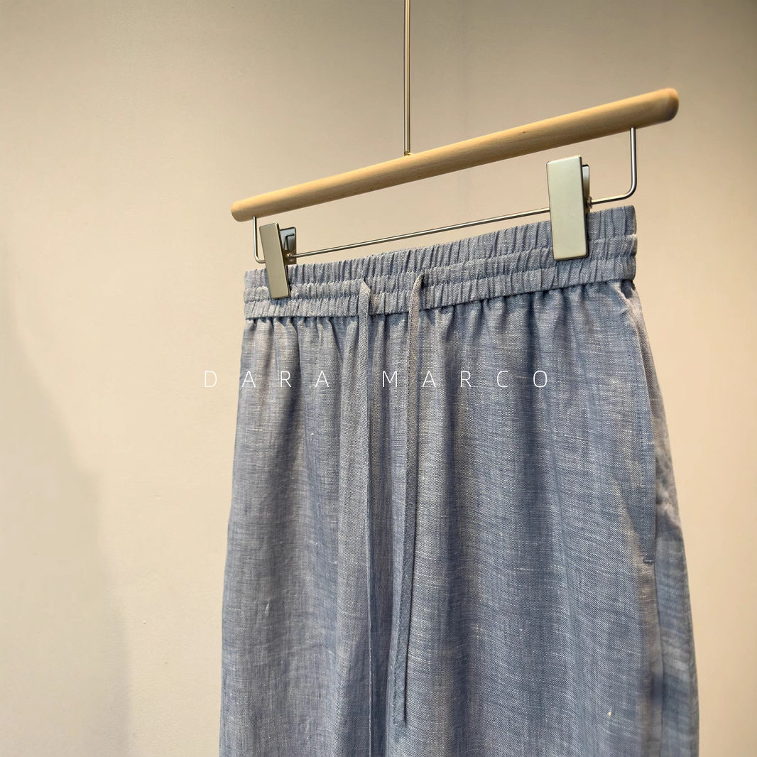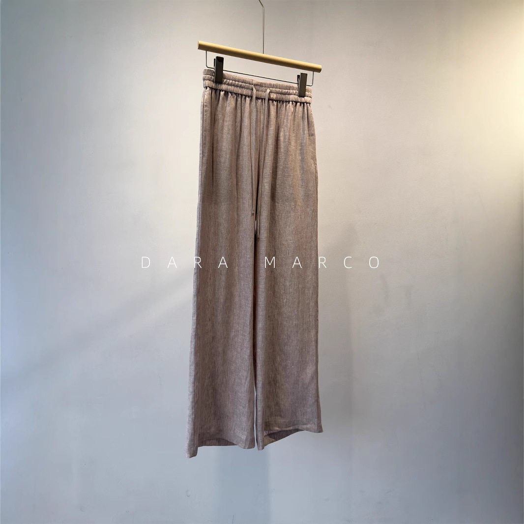 📚 LP家垂感拖地老钱宽松长款抽绳松紧裤子女亚麻色织纯麻26春新款