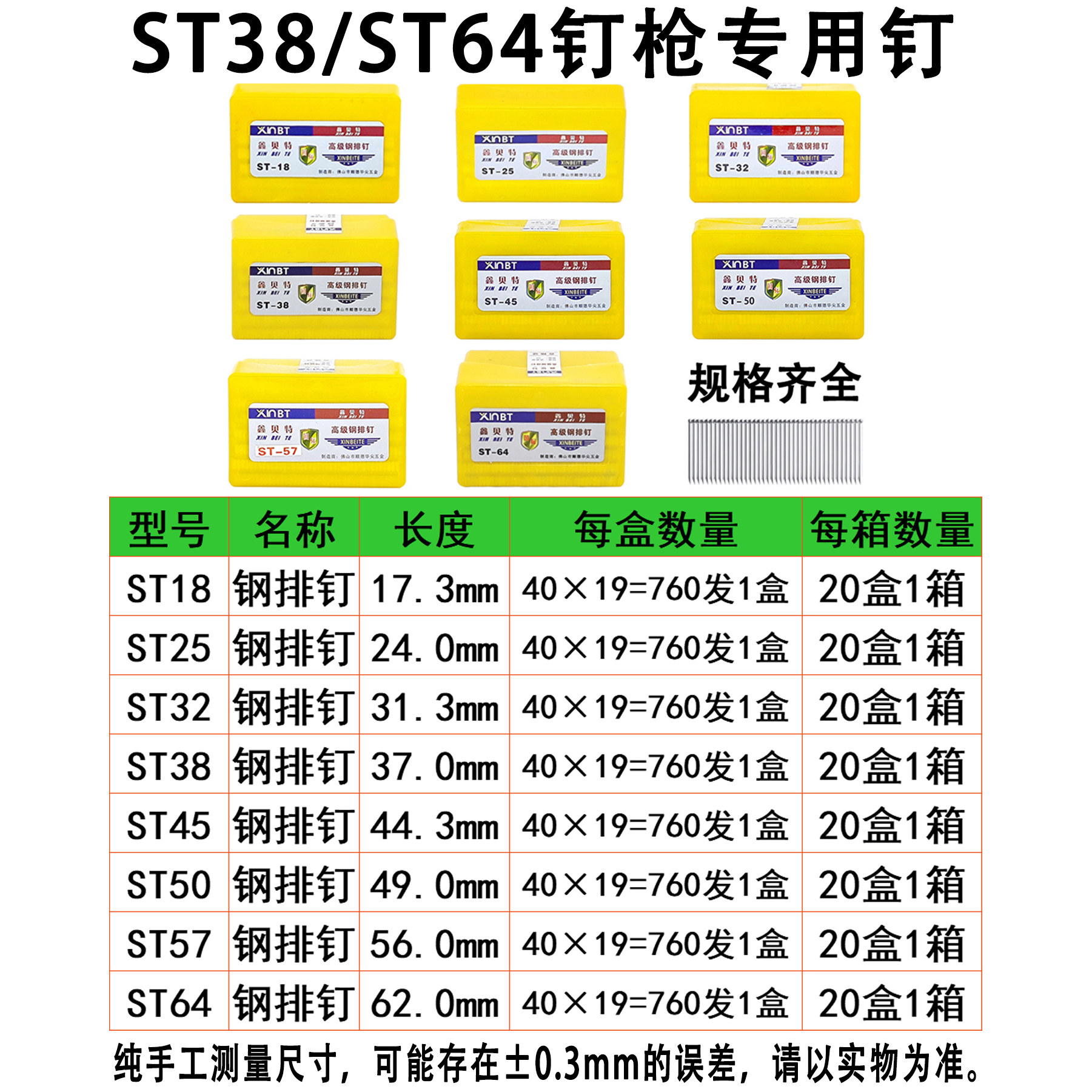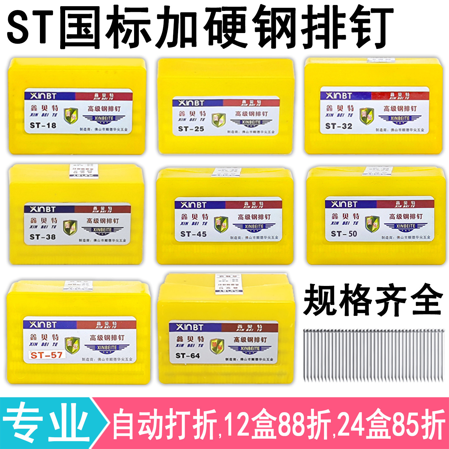 📚 国标加硬ST64钢排钉ST18st253238455057木工气动钉踢脚线水泥枪钉