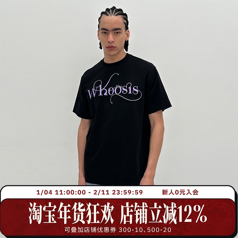 📚 WHOOSIS(不知其名)浪漫字体短袖t恤重磅基础春夏宽松男街头情侣
