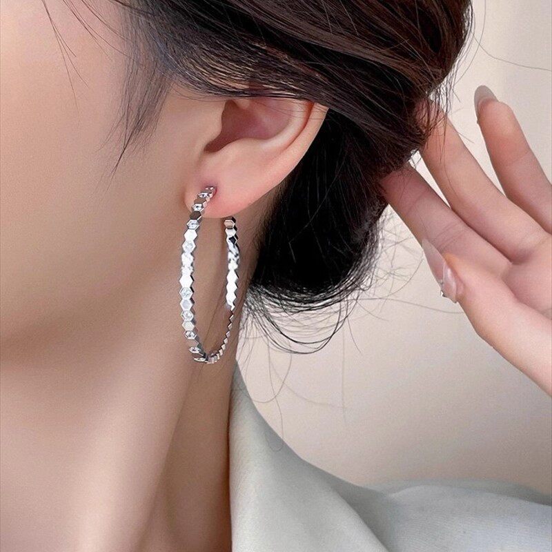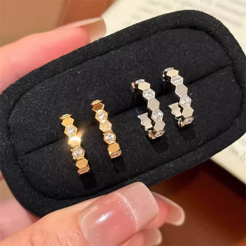 📚 轻奢18K蜂巢耳环女轻奢几何耳圈莫桑钻蜂窝耳饰时尚玫瑰金耳钉