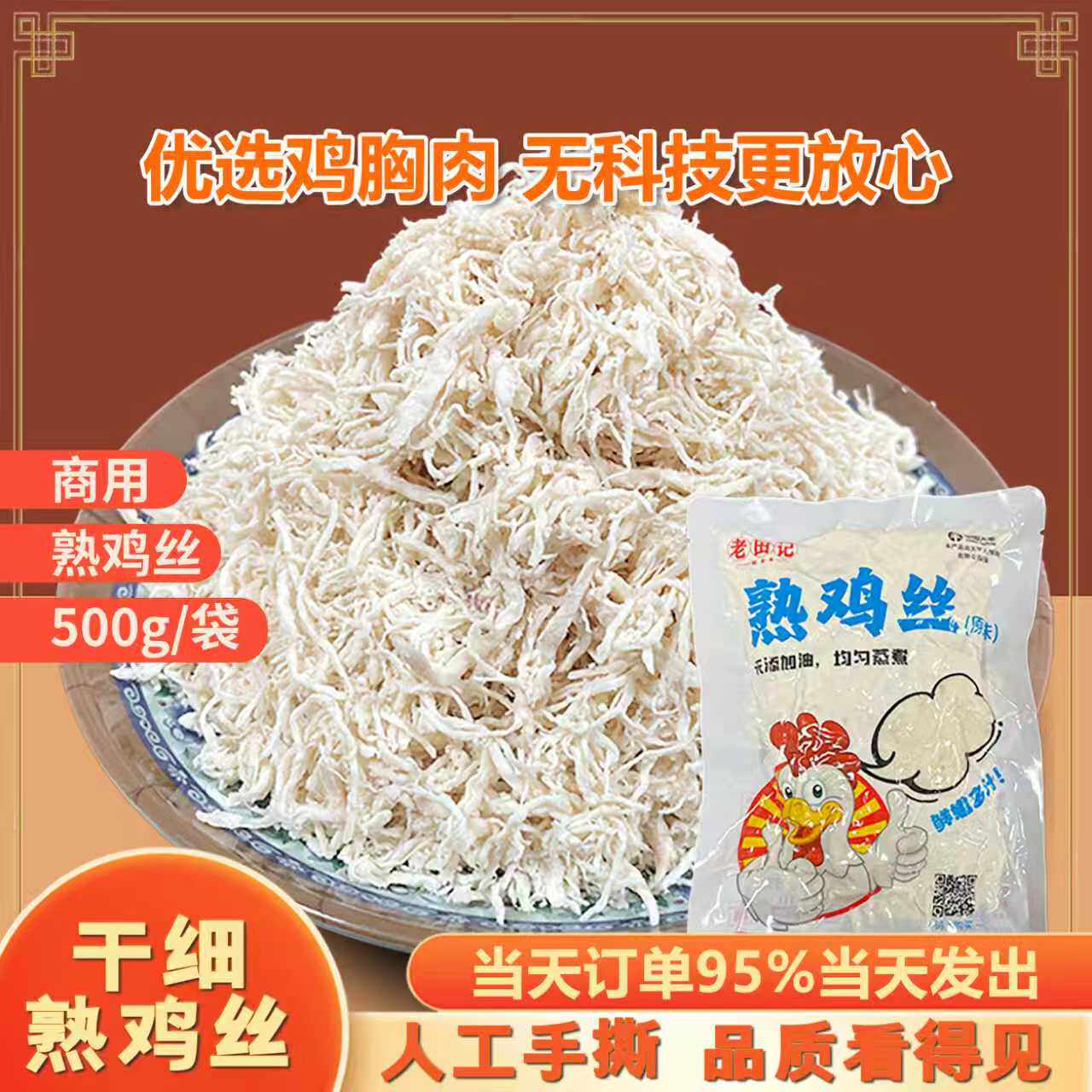 📚 老金记熟鸡丝商用手撕鸡肉开店面馆鸡胸肉半成品泡饭凉拌1斤/浇头