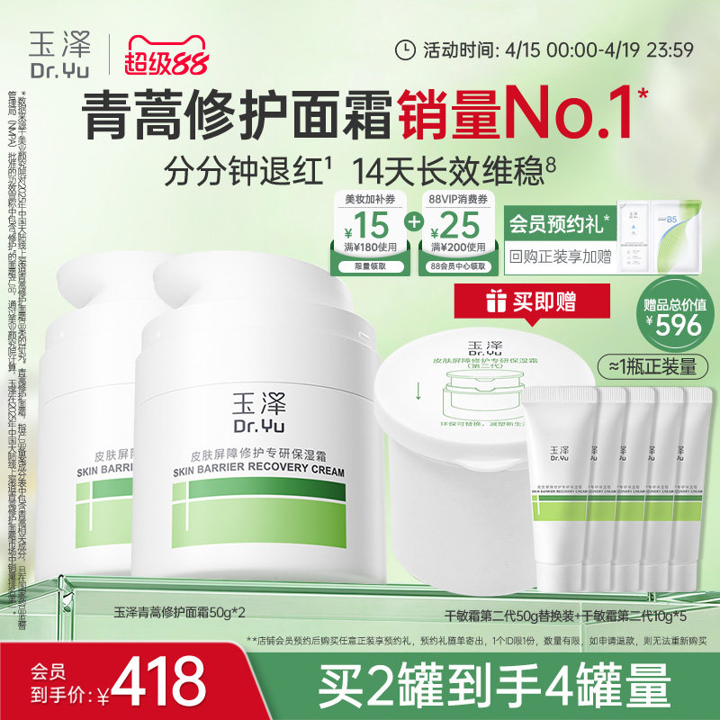 📚 玉泽干敏霜第二代屏障修护舒缓面霜敏感肌保湿青蒿退红补水维稳