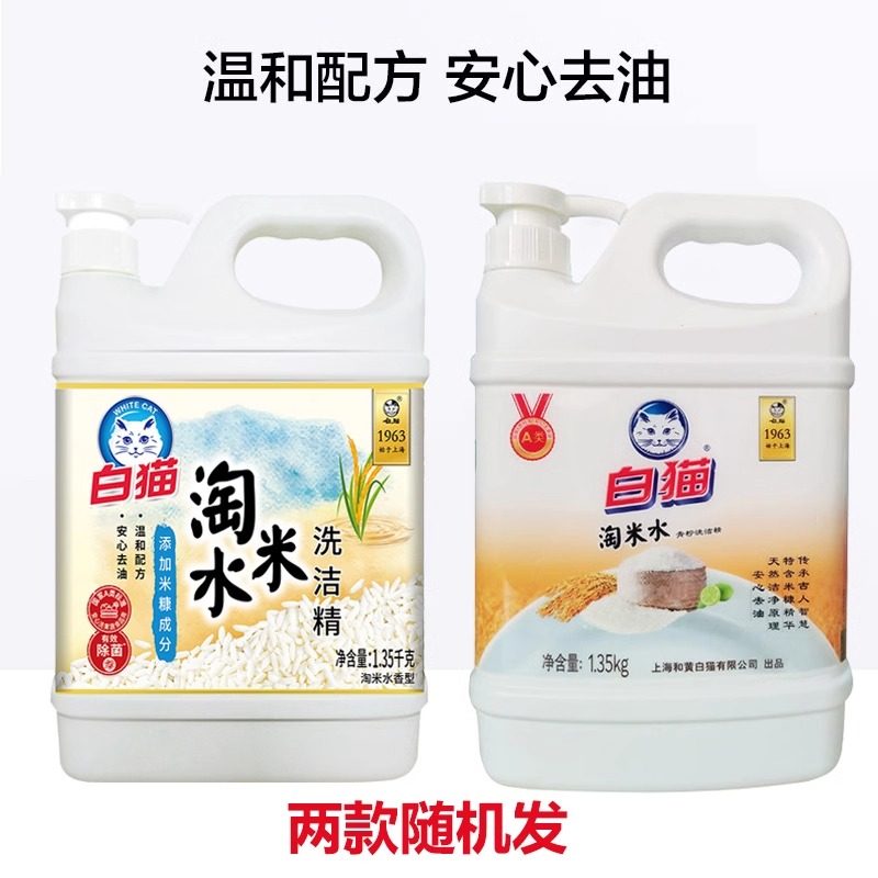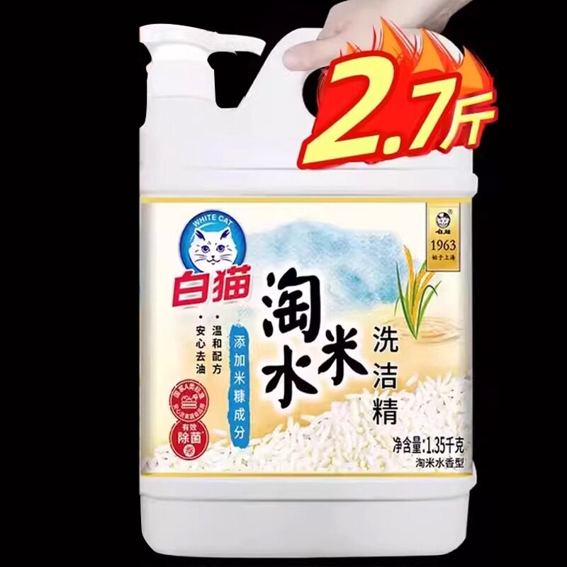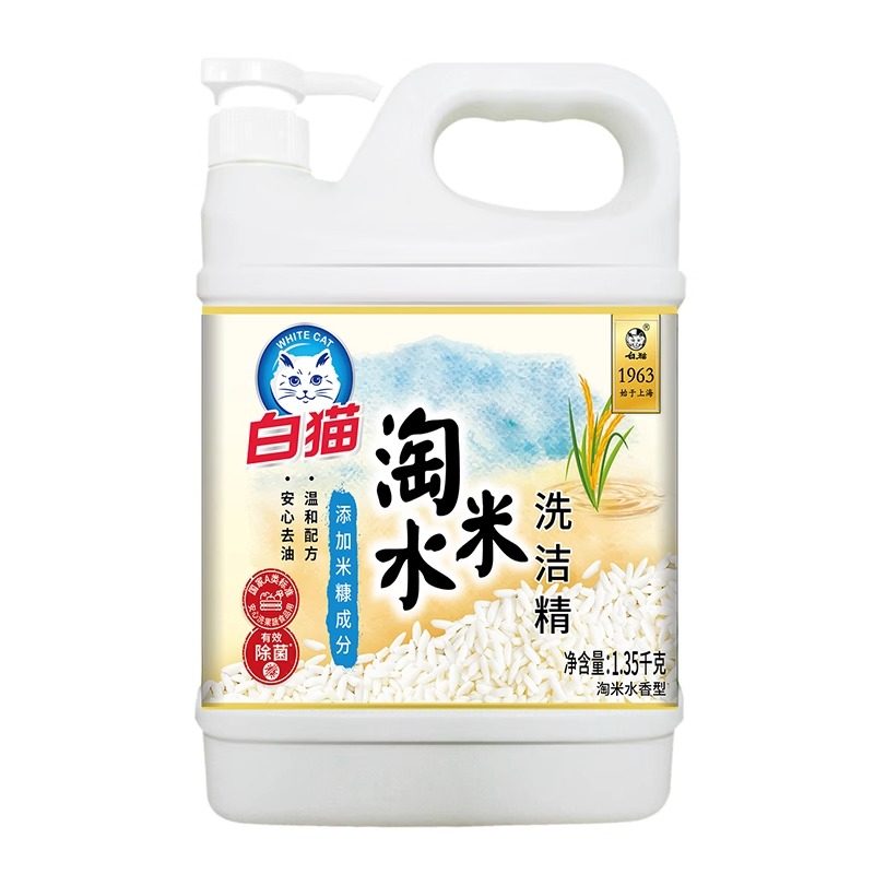 📚 白猫淘米水洗洁精1.35KG米精华餐具果蔬不伤手去油渍家用洗涤剂