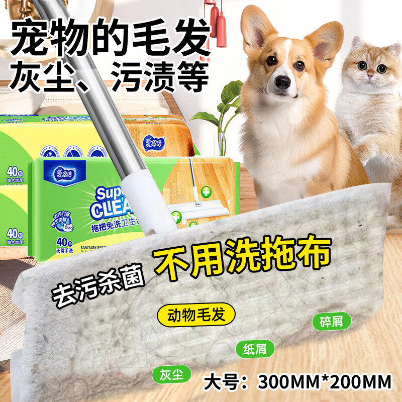 📚 爱恩倍擦地板清洁湿巾除菌拖把纸静电除尘一次性免洗抹布拖把