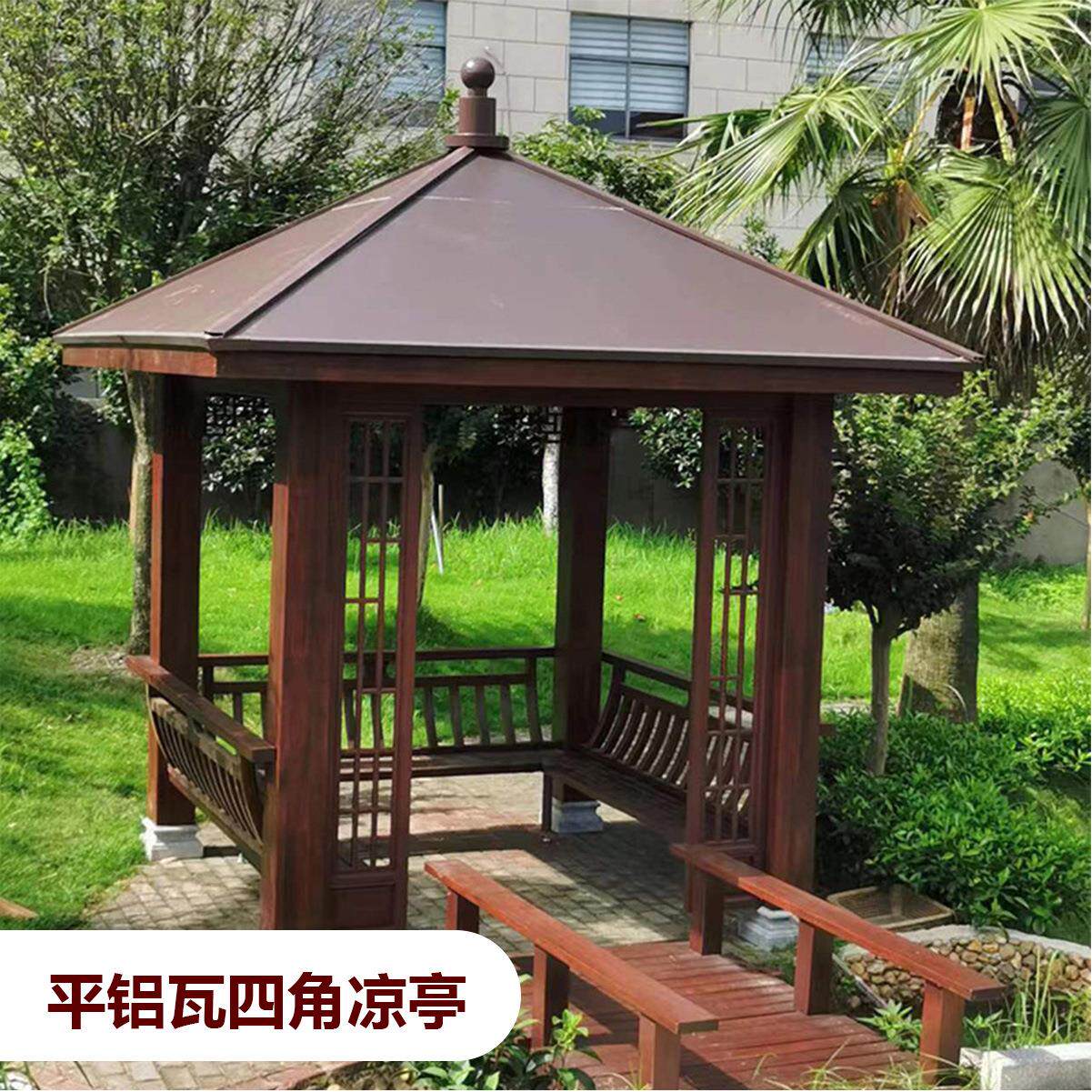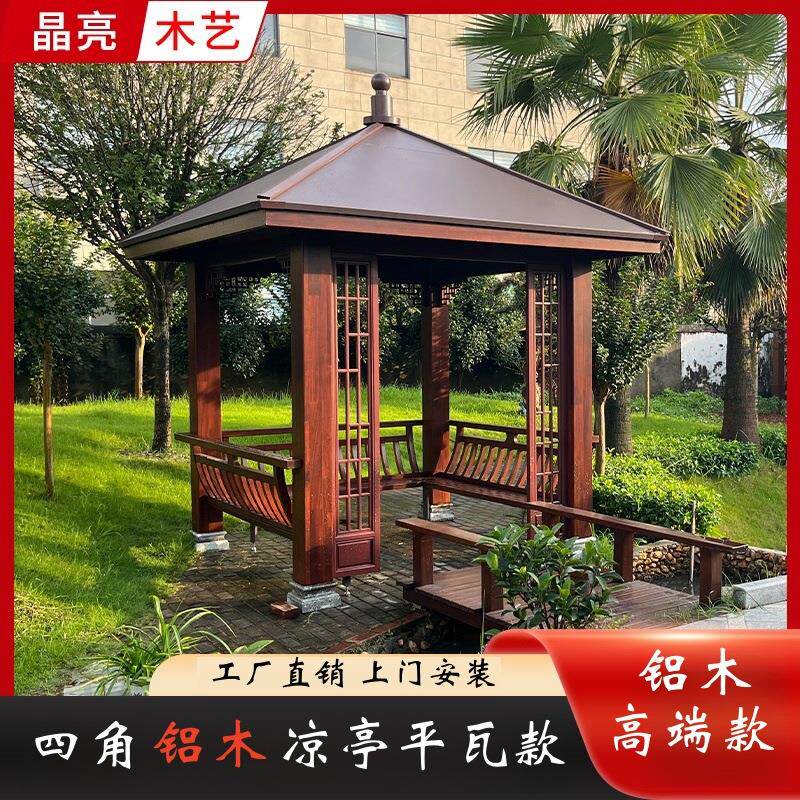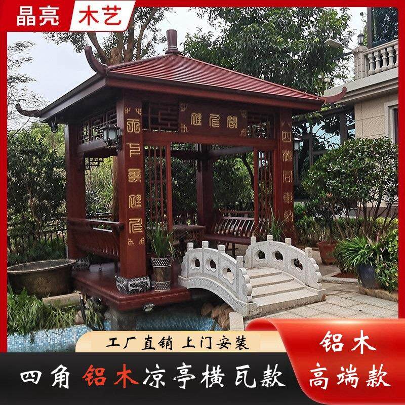📚 四六角铝包木凉亭装饰新中式铝木遮阳防晒亭别墅户外公园庭院室外