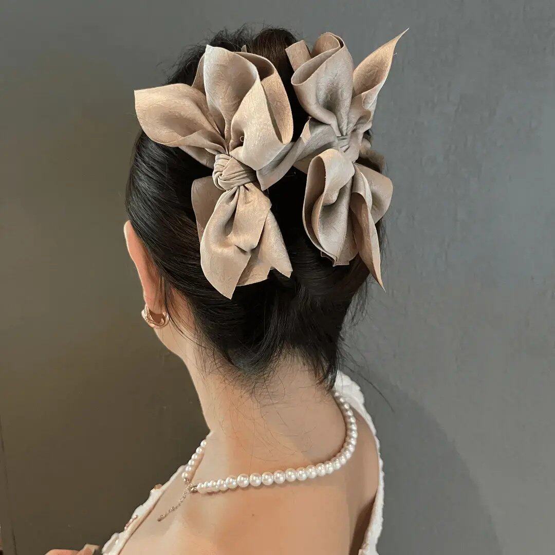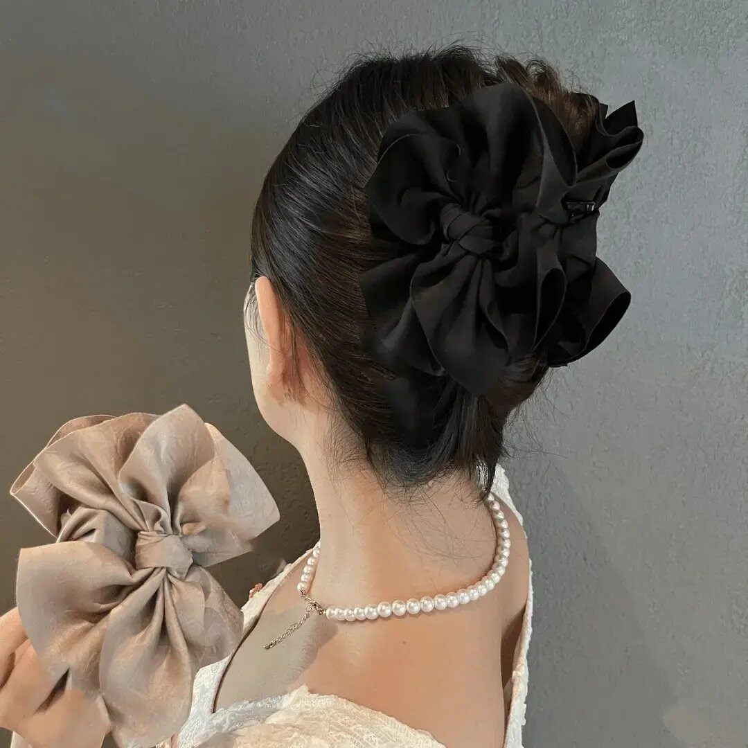 📚 法式蝴蝶结抓夹女高级感缎面发夹后脑勺盘发鲨鱼夹低扎马尾夹头饰