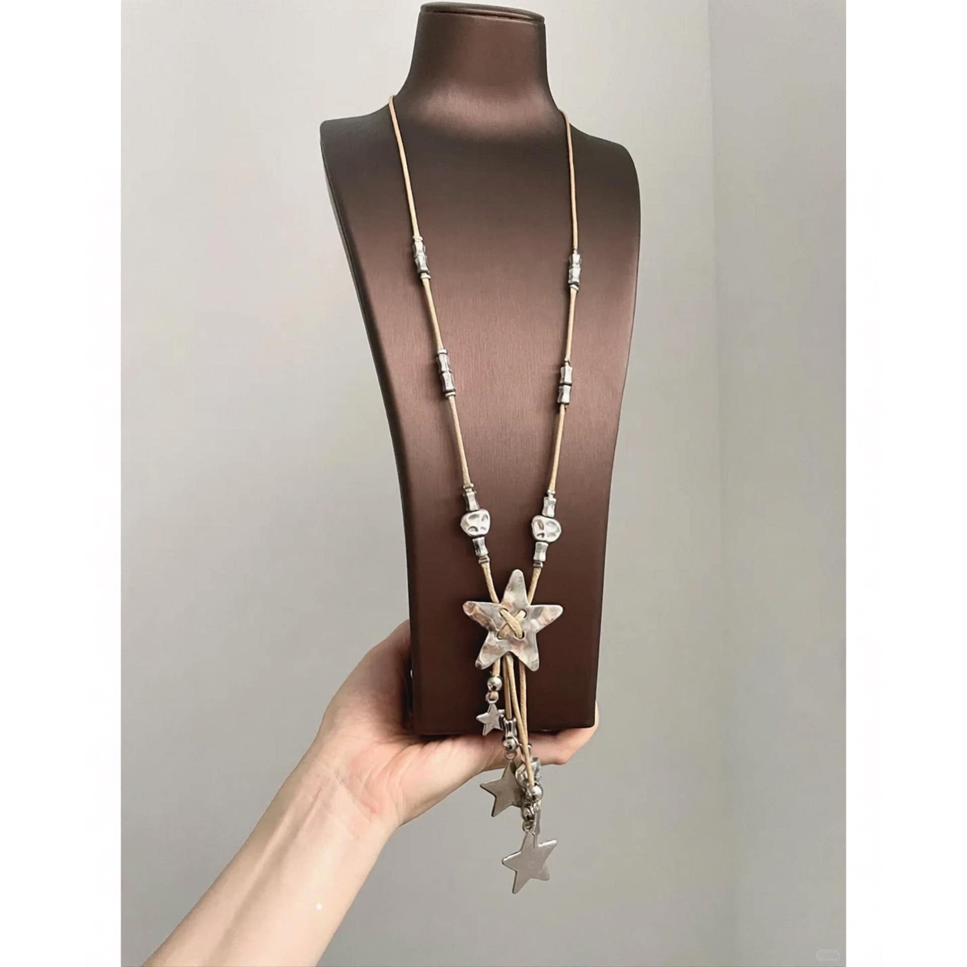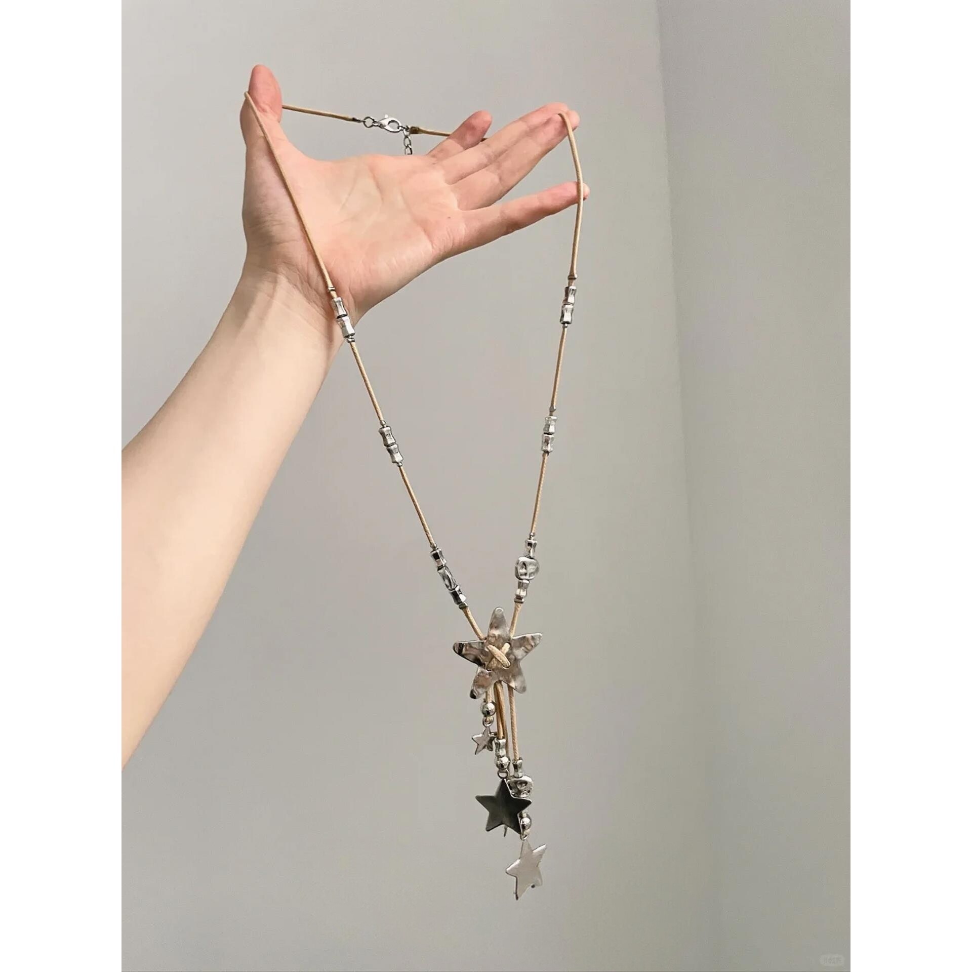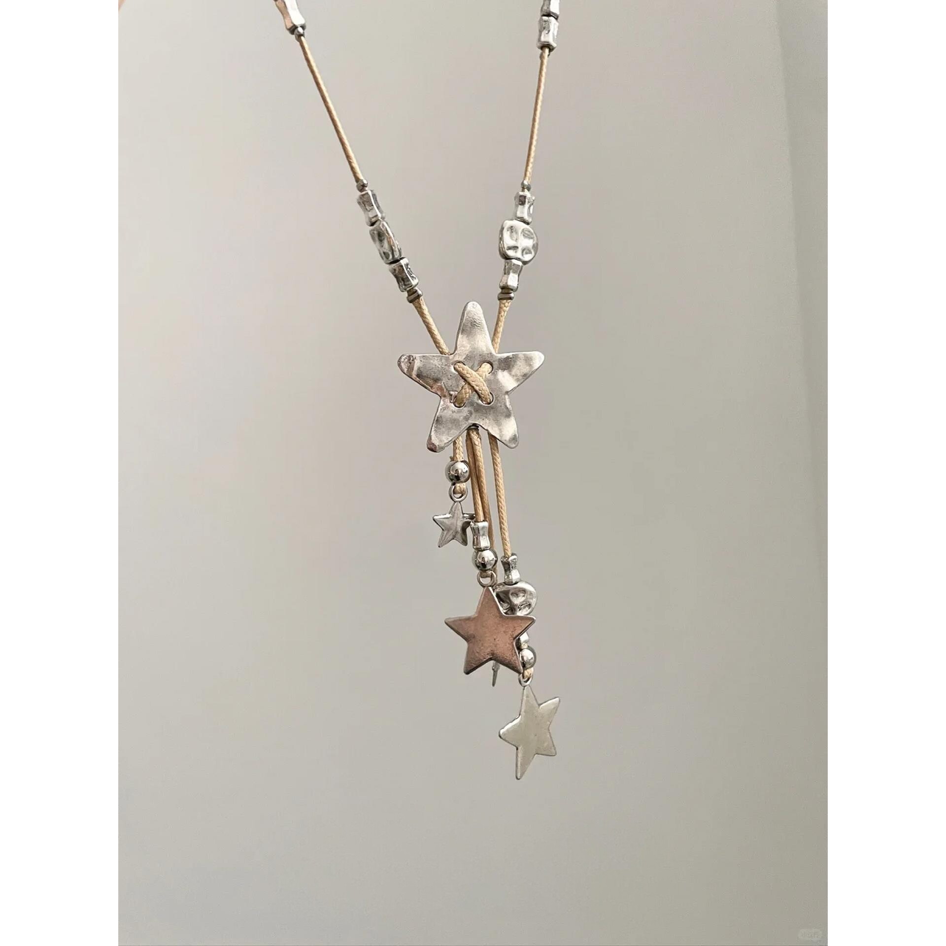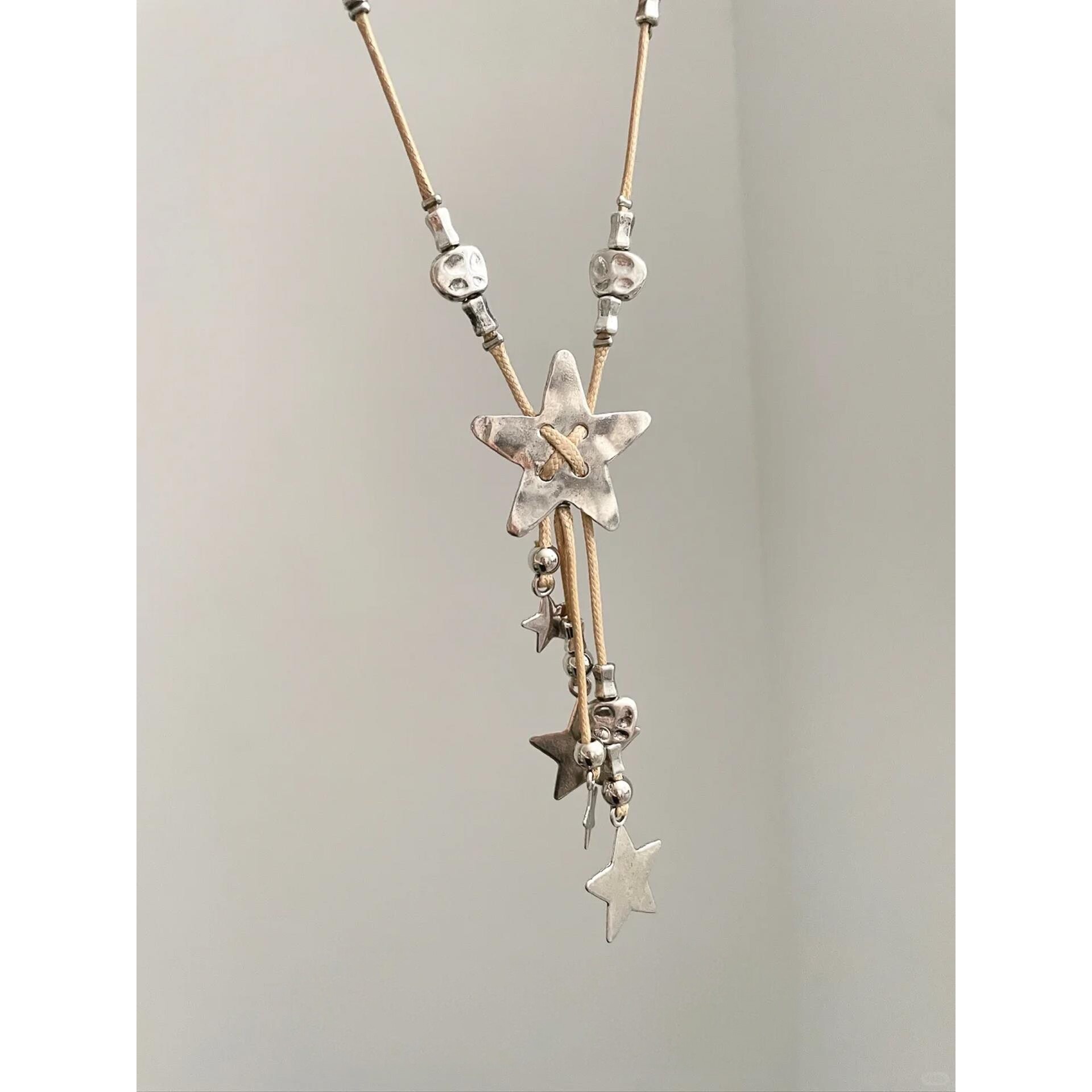 📚 复古做旧编绳星星流苏项链小众y2k千禧辣妹风颈链配饰秋冬毛衣链