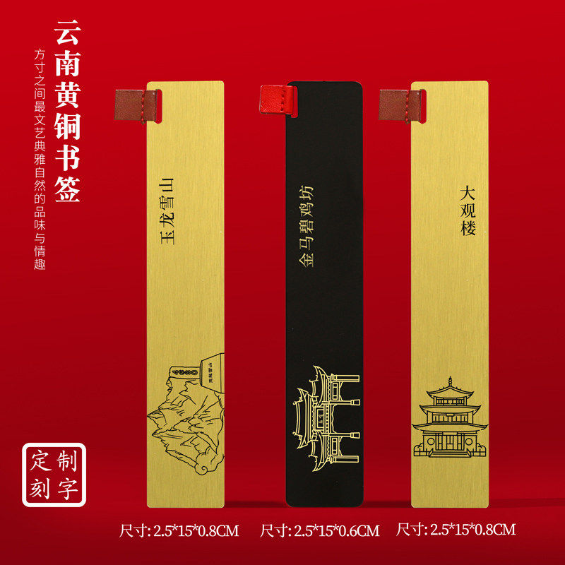📚 云南文创黄铜书签玉龙雪山大观楼金马碧鸡坊旅游纪念品刻字送朋友