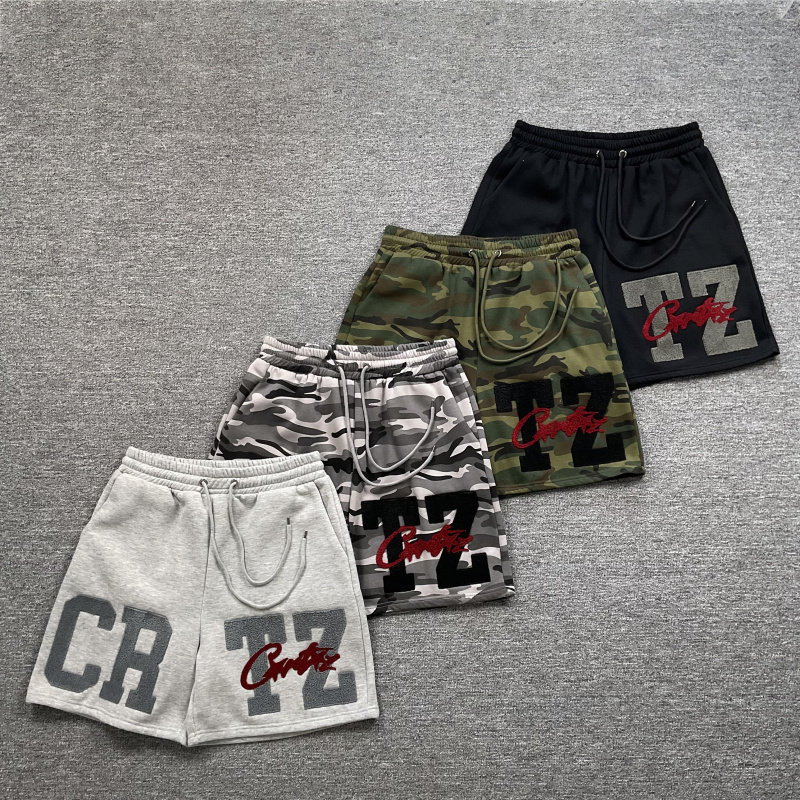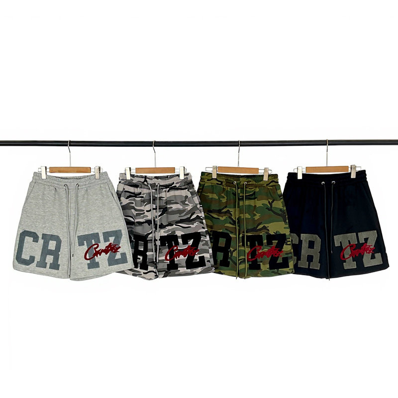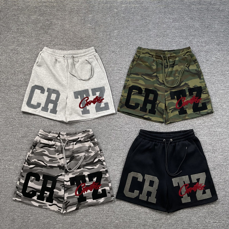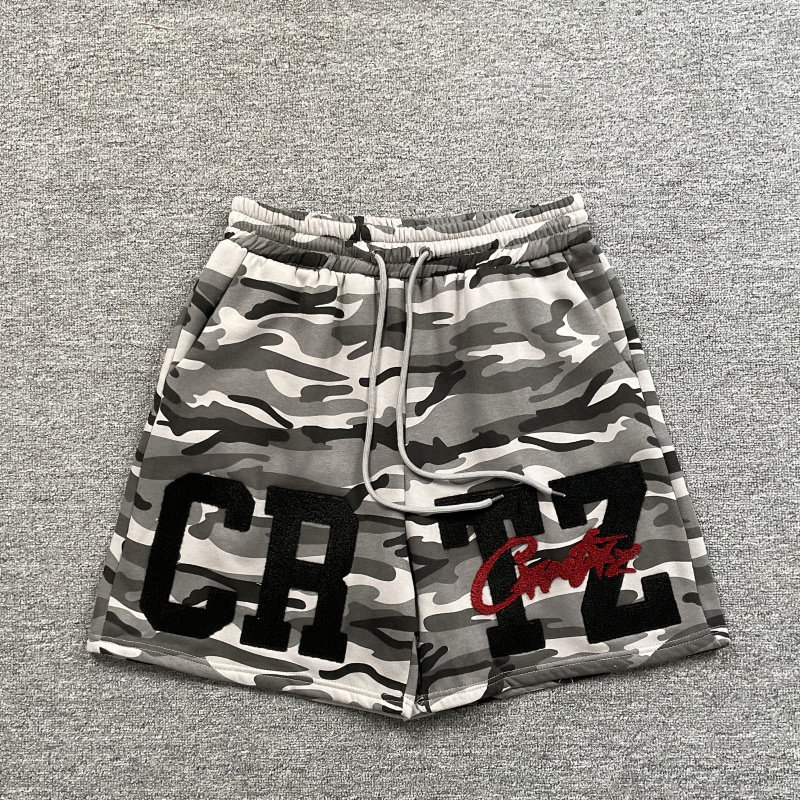 📚 corteiz camouflage shorts美潮高街字母刺绣加绒抽绳迷彩短裤fog