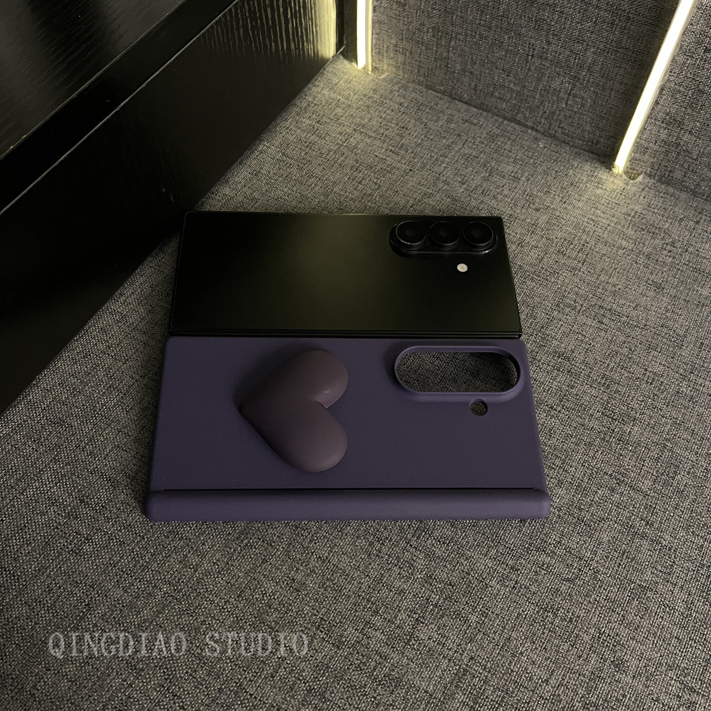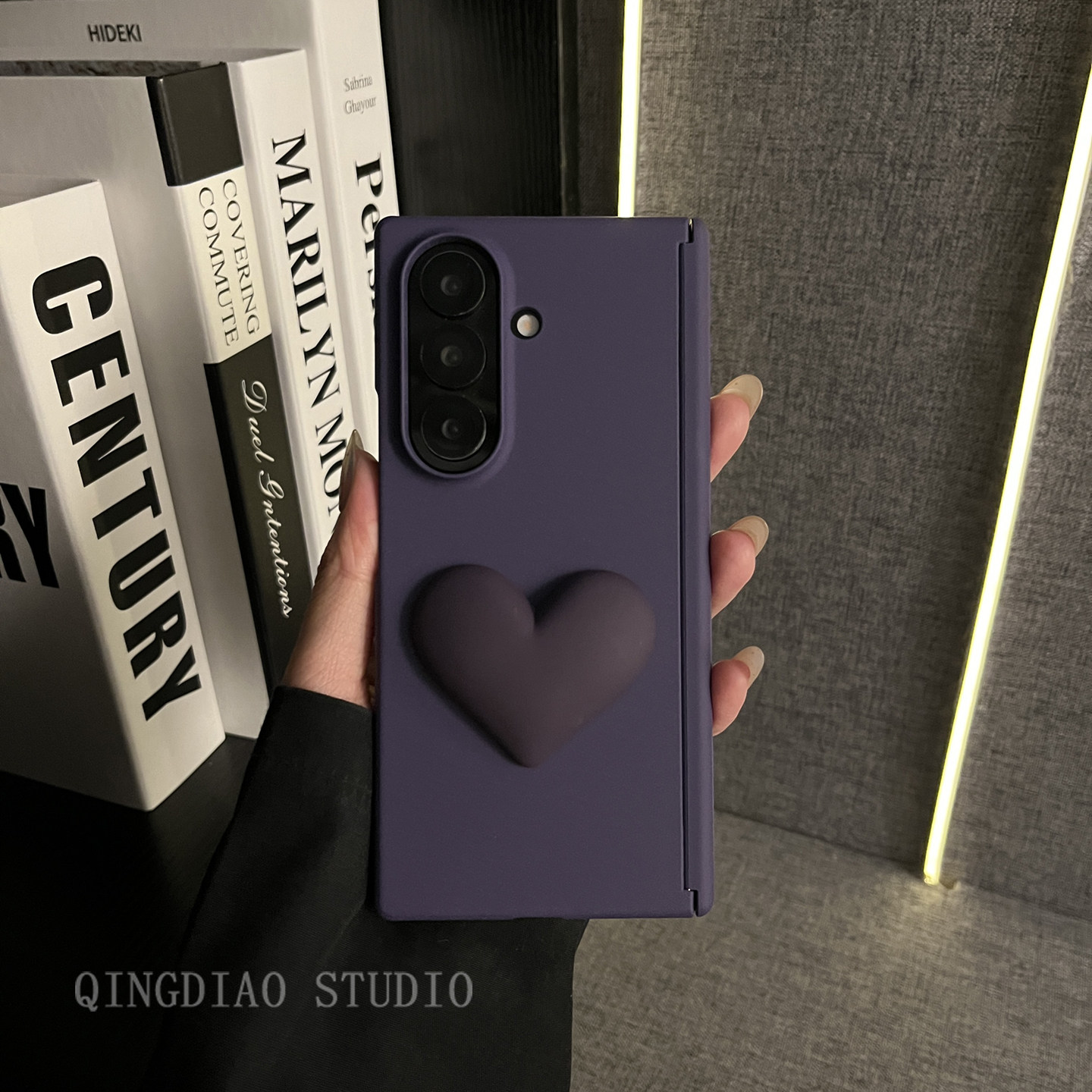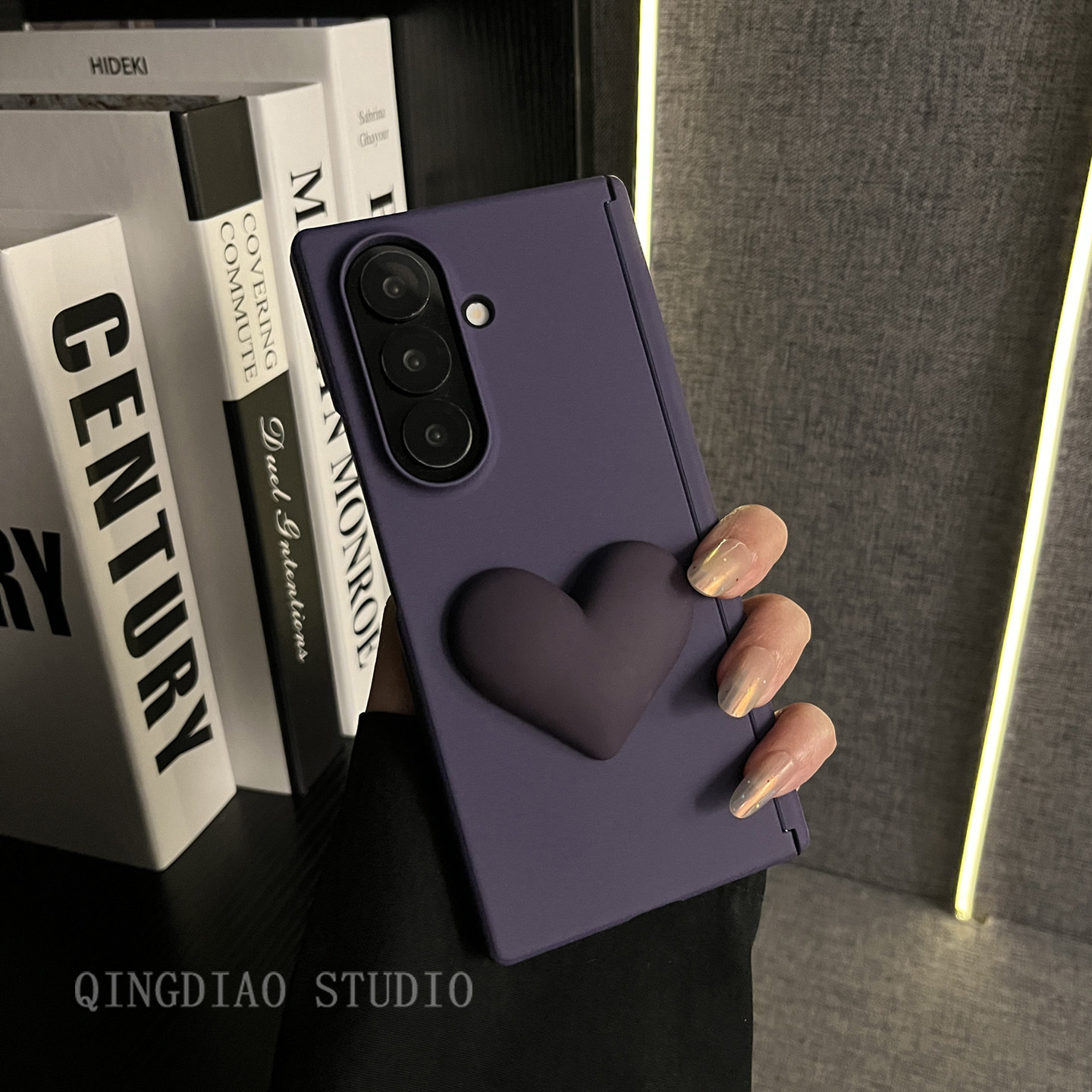 📚 轻调 高档双中轴岩沙暗紫大爱心适用三星zfold7/6/5/4/Galaxy Z W25/24/23手机壳新款折叠屏翻盖防摔保护套