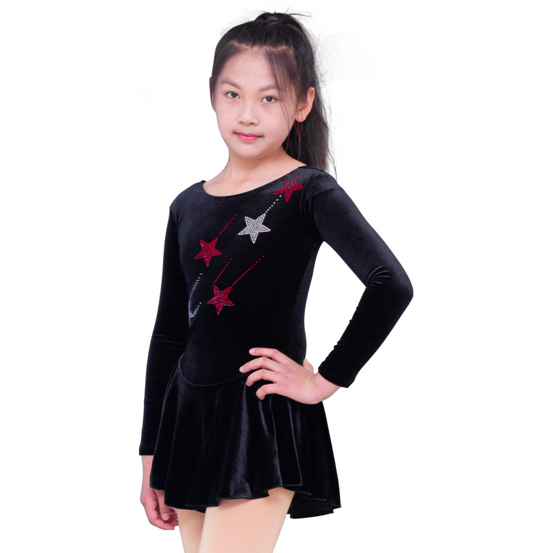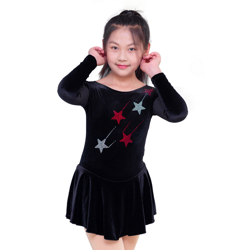 📚 花样滑冰训练服儿童女表演出花滑考斯滕考级比赛裙子黑色长袖定制