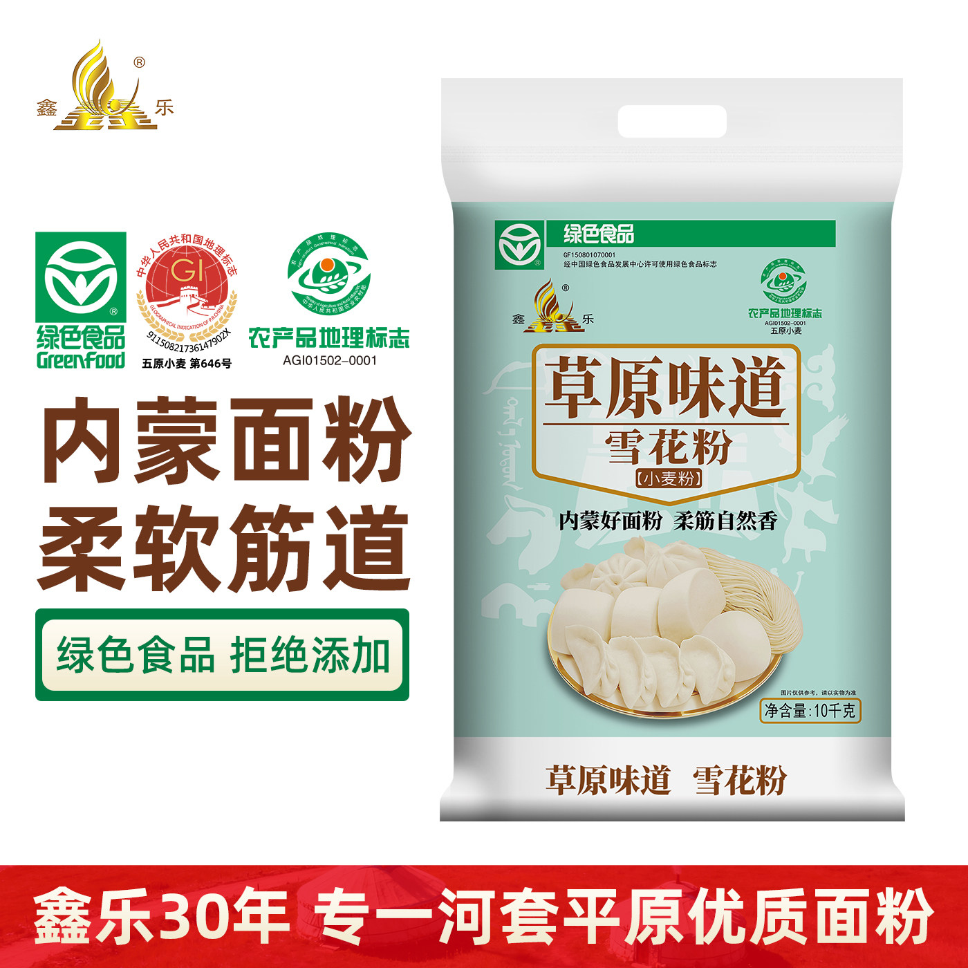 📚 鑫乐草原味道雪花粉10kg*1袋河套平原中筋面粉小麦粉家用绿色食品