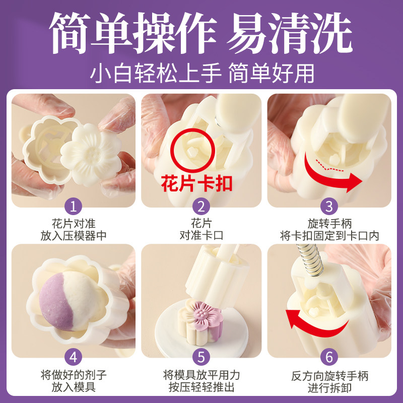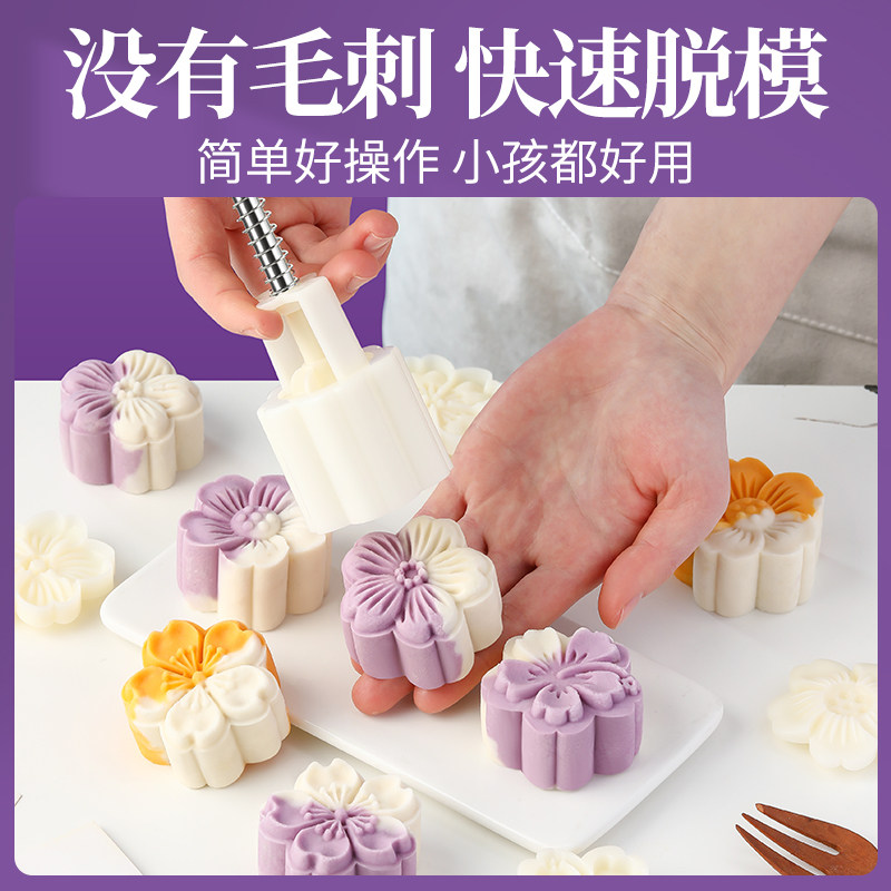 📚 月饼模具新款绿豆糕点心辅食按压山药糕花烘焙手压式家用造型磨具