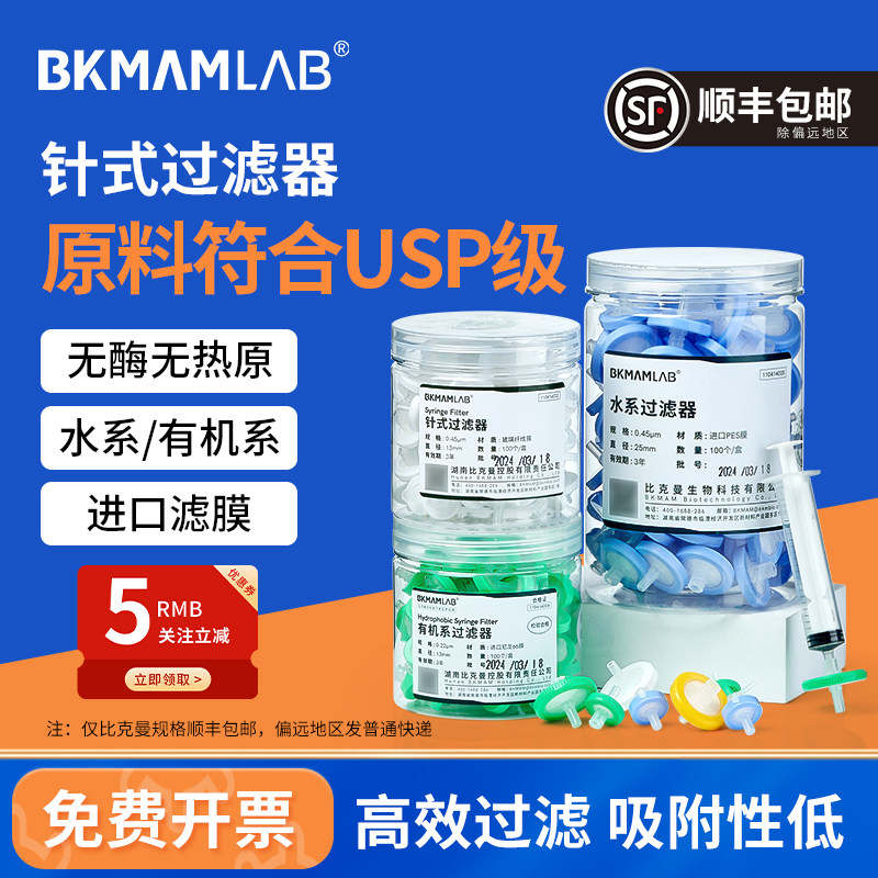 📚 比克曼生物针式过滤器有机系一次性0.45滤头0.22水系针头微孔滤膜