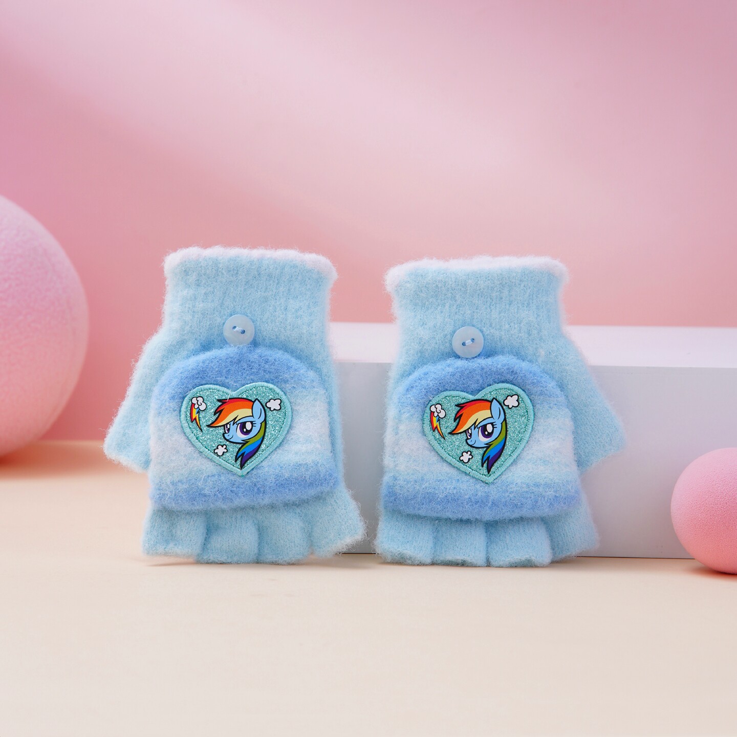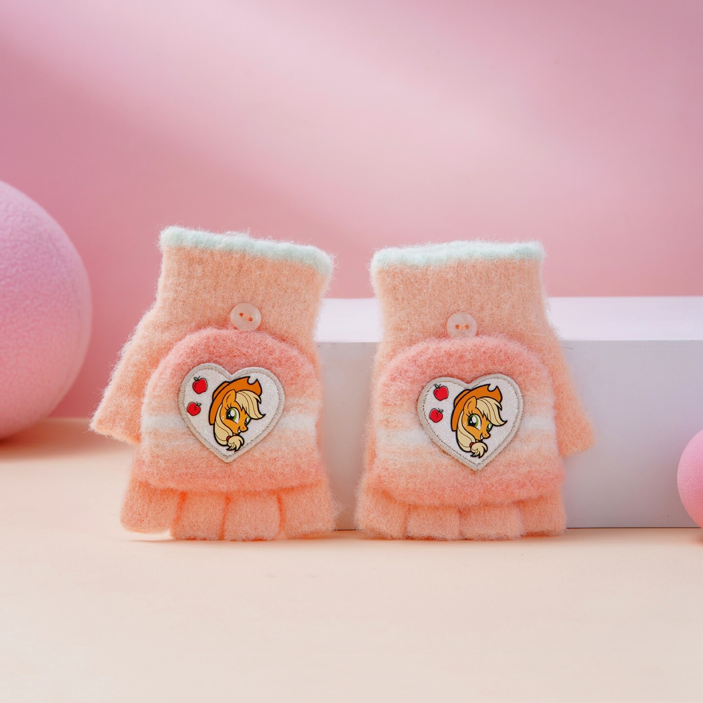 📚 小马宝莉儿童手套冬季薄款女童露指半指翻盖幼儿园女孩小孩冬天
