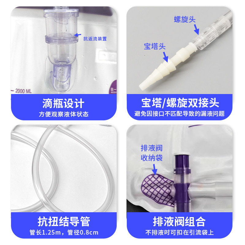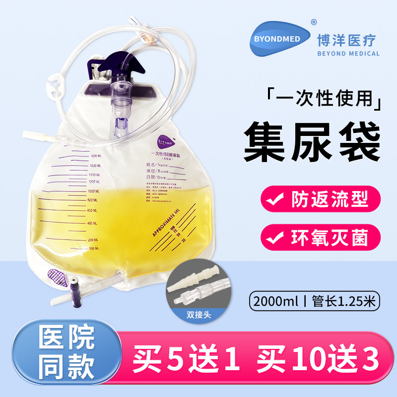 📚 博洋一次性使用集尿袋抗返流医用加厚宝塔螺旋双接头防逆流引流袋