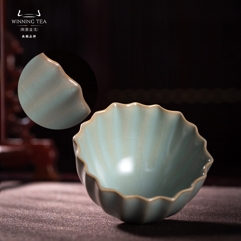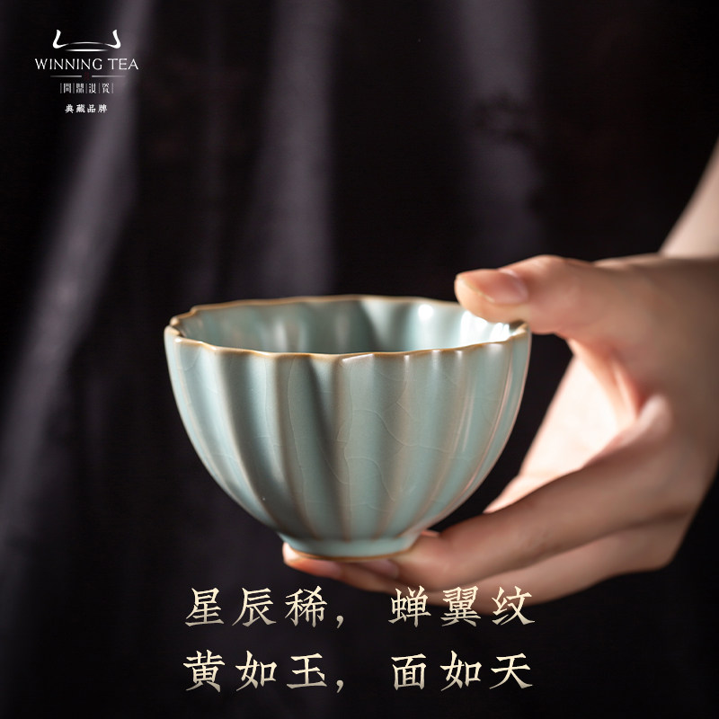 📚 问鼎汝窑菱式盅主人杯高档个人专用景德镇陶瓷送礼茶具功夫茶杯