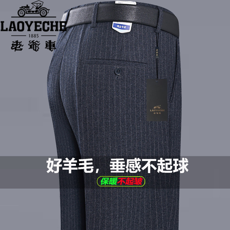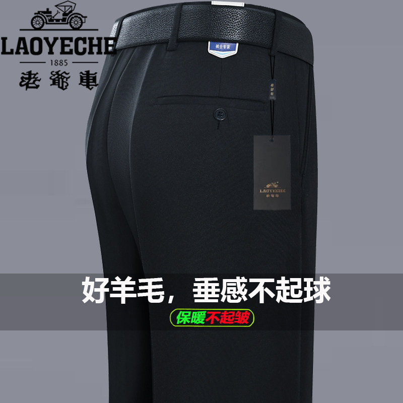 📚 老爷车羊毛西裤男秋冬厚款中年高腰深档直筒商务免烫休闲西装裤子