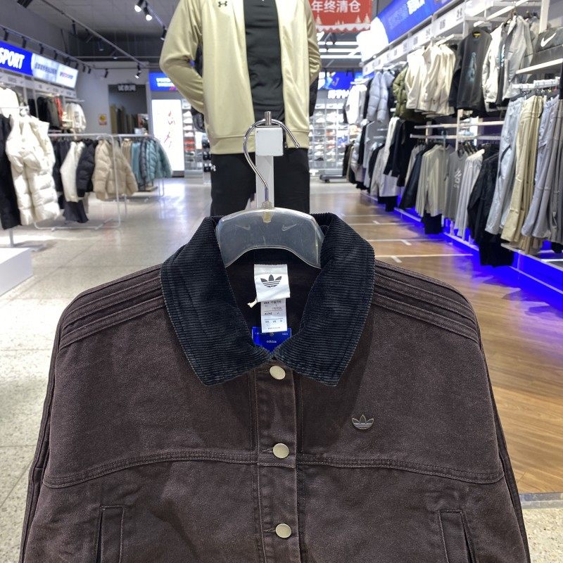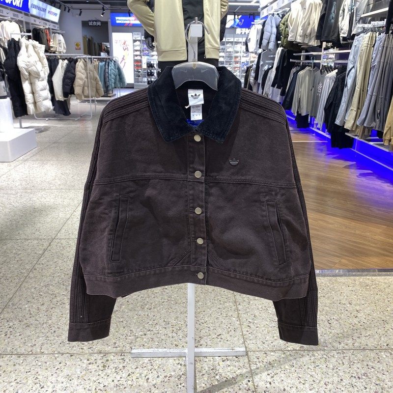 📚 正品Adidas阿迪达斯女三叶草纯棉翻领纽扣短款休闲夹克外套KC8889