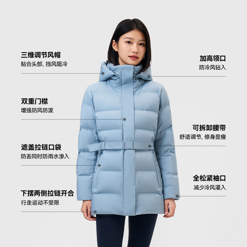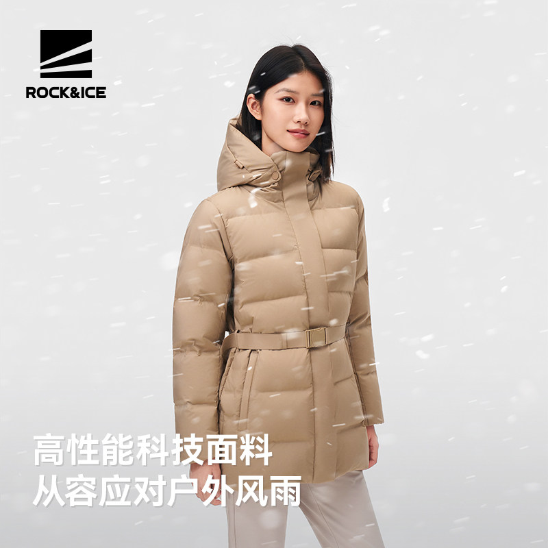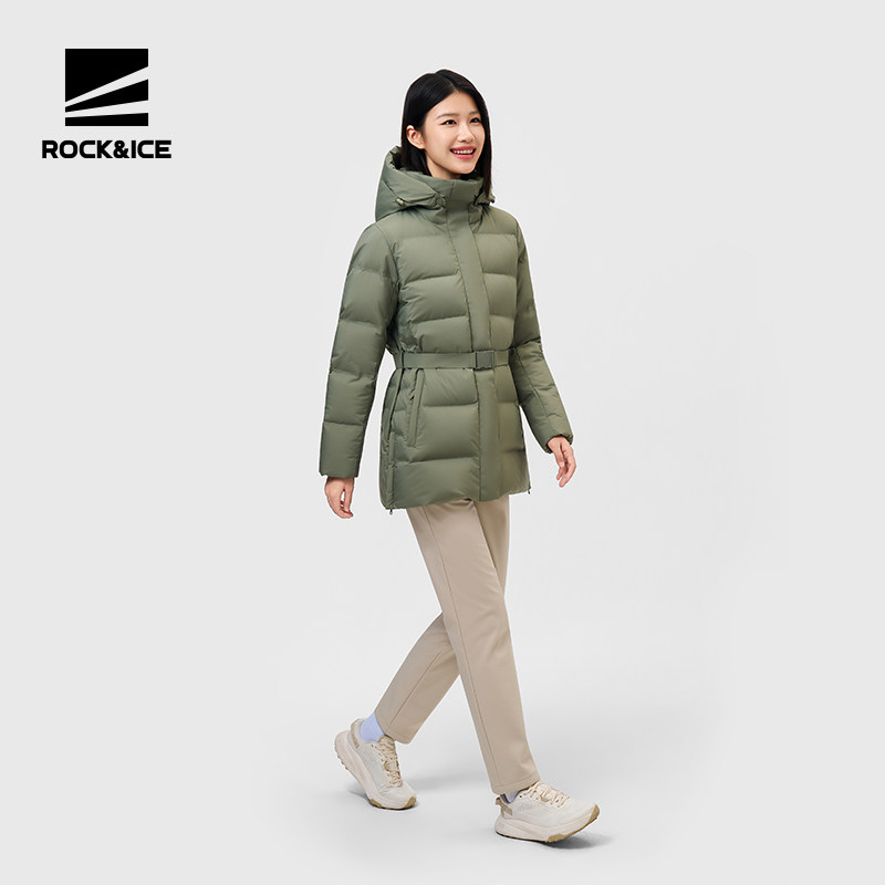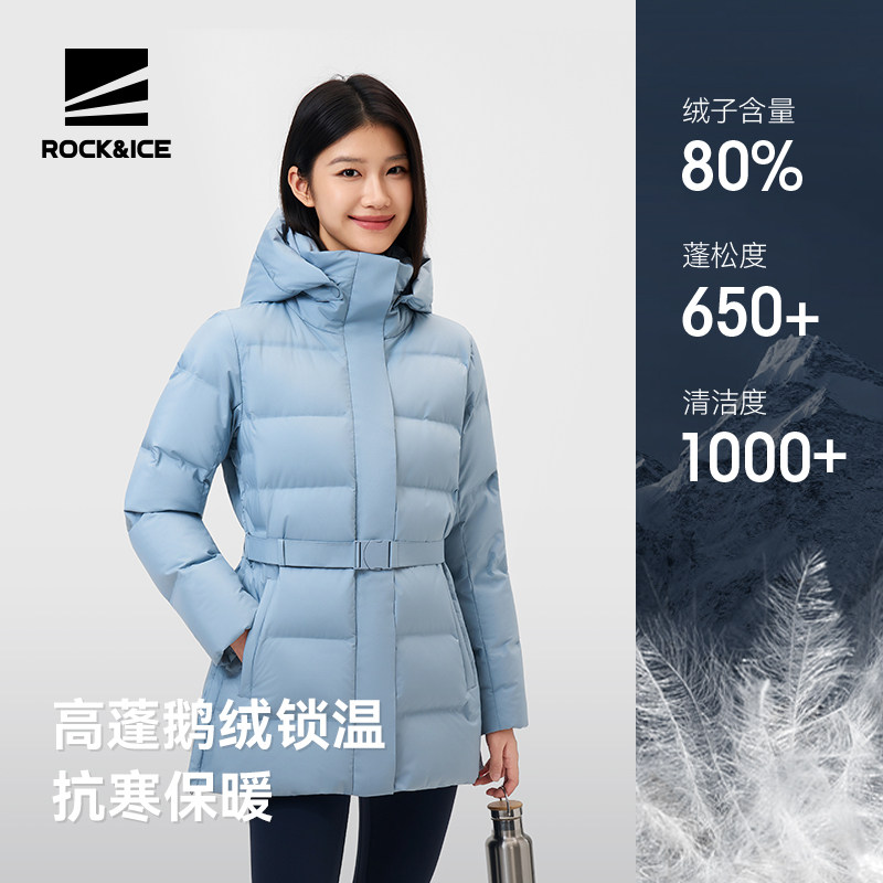 📚 ROCKICE收腰羽绒服女中长款鹅绒服户外防风保暖修身外套商务夹克