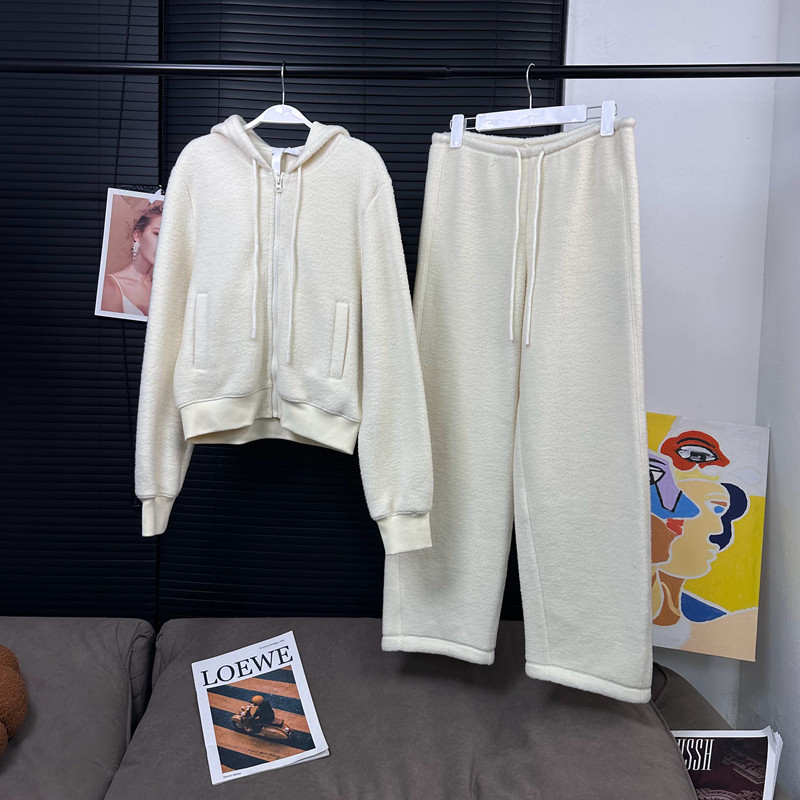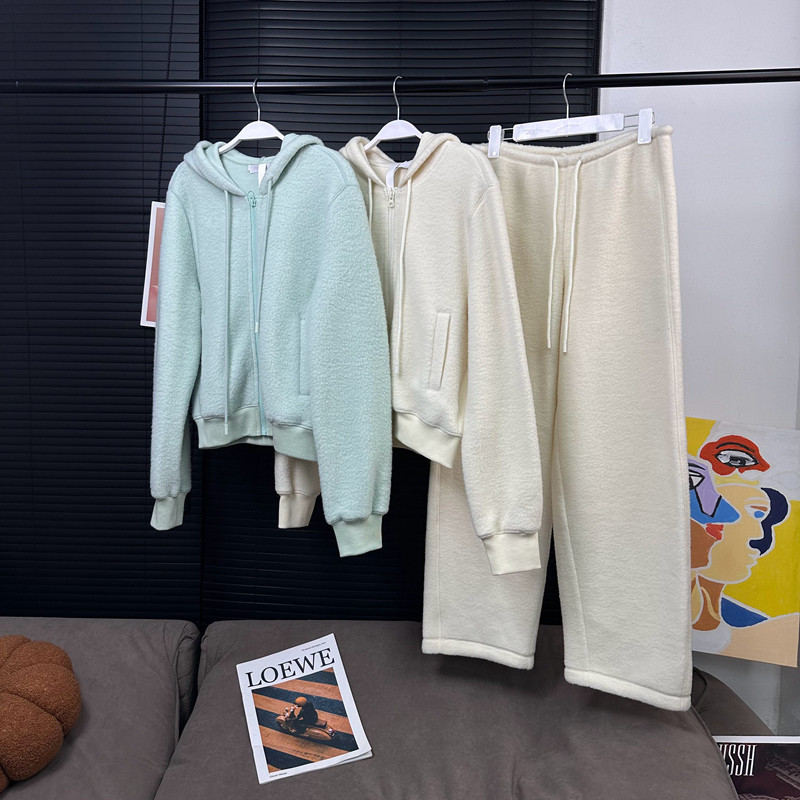 📚 MS10/10新品豚草果绿&缱绻米白云感羊毛卫衣裤套装