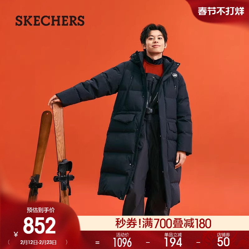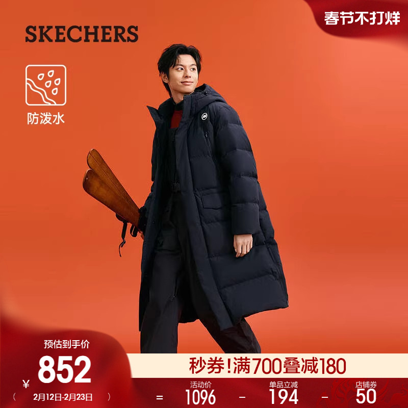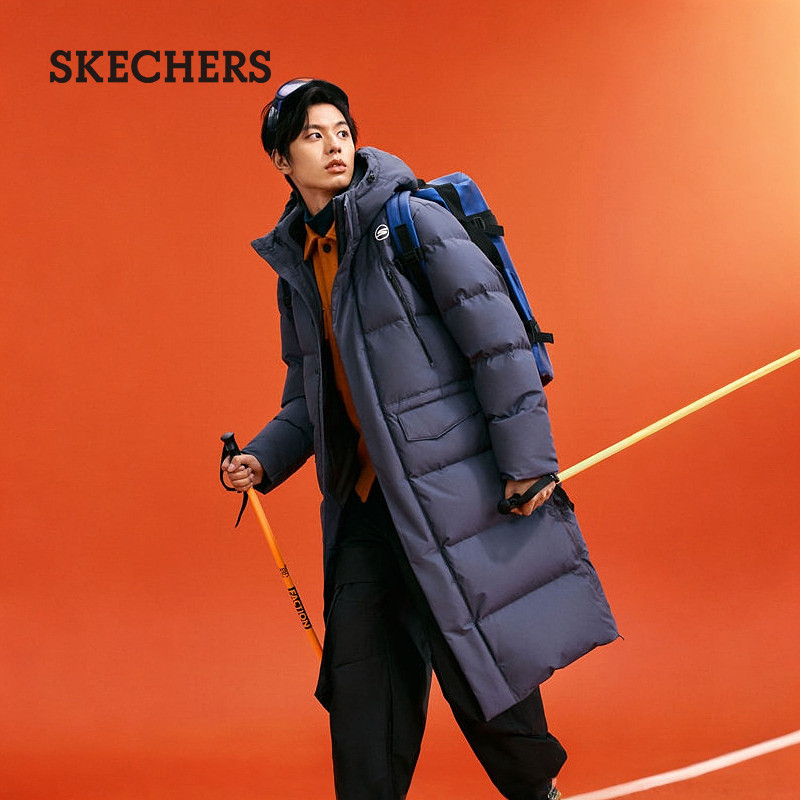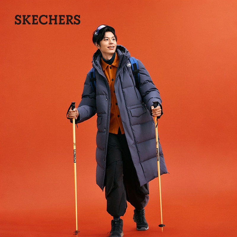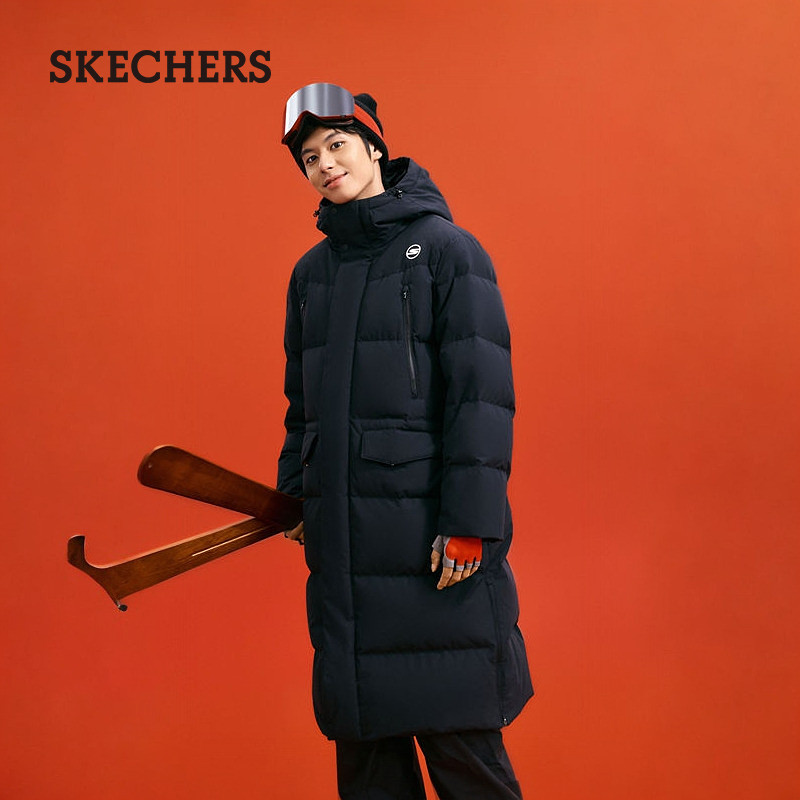 📚 斯凯奇冬季新款男子连帽梭织长款羽绒服防泼水舒适百搭保暖外套