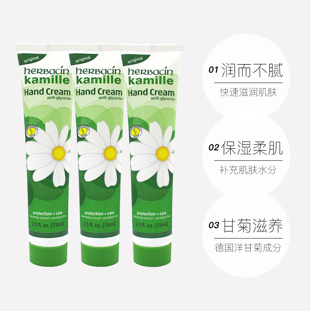 📚 【自营】Herbacin 贺本清德国正品小甘菊保湿滋养护手霜75ml3支装