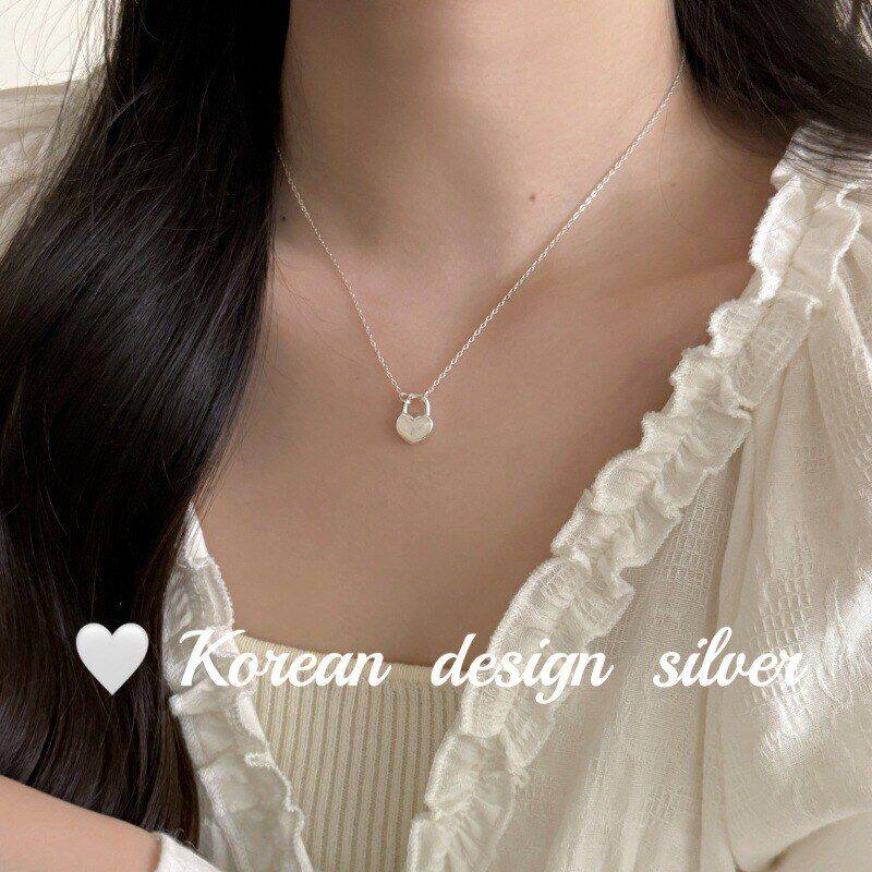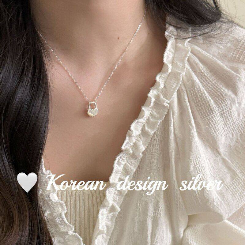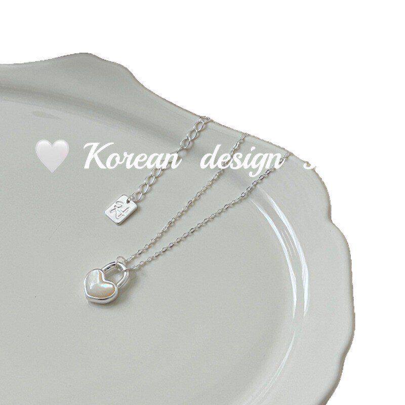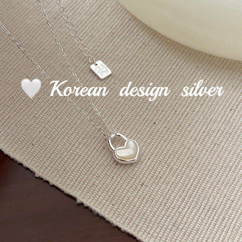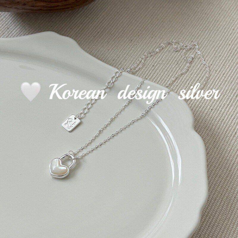 📚 百搭S925风ins跨境韩版爱心高级感纯银锁白银饰设计项链贝母简约