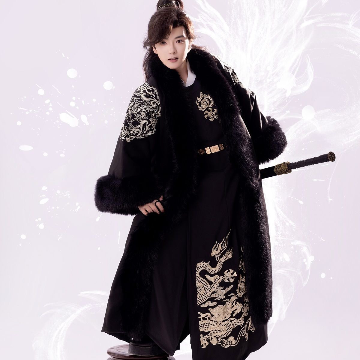 📚 正品【御龙】汉服男原创冬季加绒加厚斗篷裘衣唐制绣花圆领袍古装