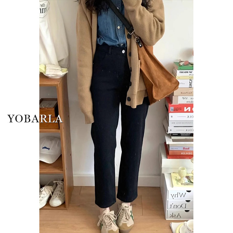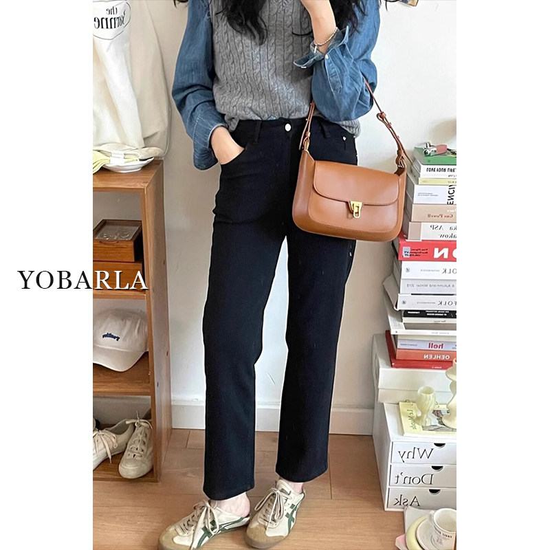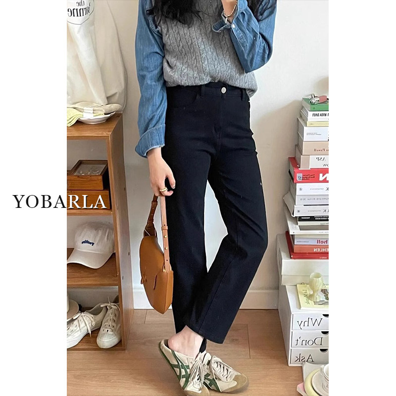 📚 黑色九分牛仔裤女春季新款大码胖mm显瘦弹力小个子窄版直筒烟管裤