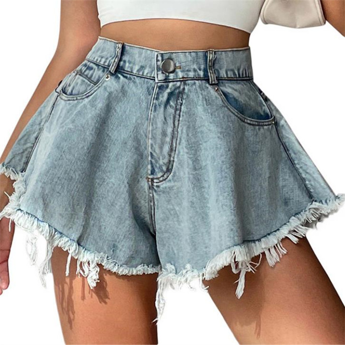 📚 欧美时尚毛边阔腿牛仔短裤热裤 Ripped Denim Shorts Jeans Women
