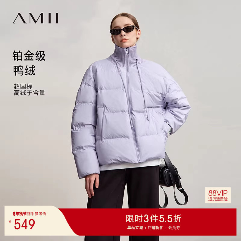📚 Amii2025冬新款休闲百搭高领拉链宽松长款无弹中长羽绒服外套