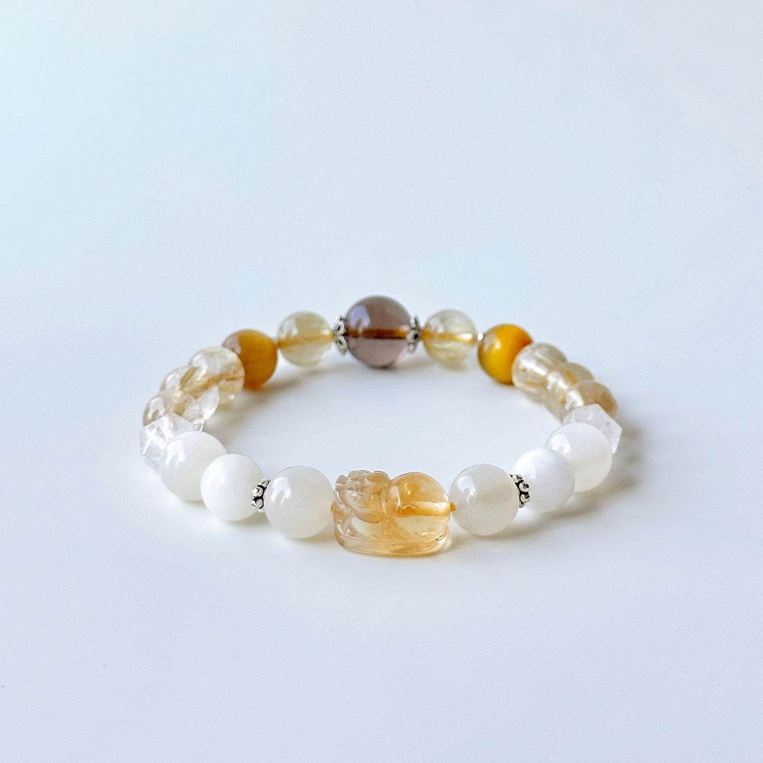 📚 天然水晶财富手串白水晶黄水晶金发晶貔貅手链男女款礼物喜土金土