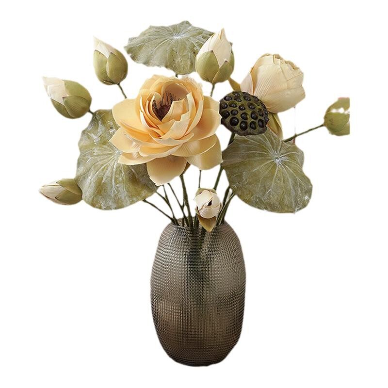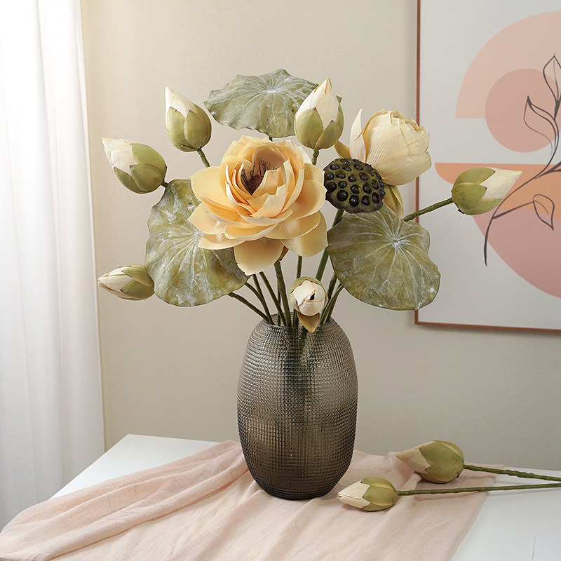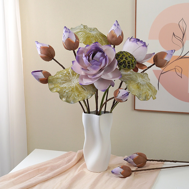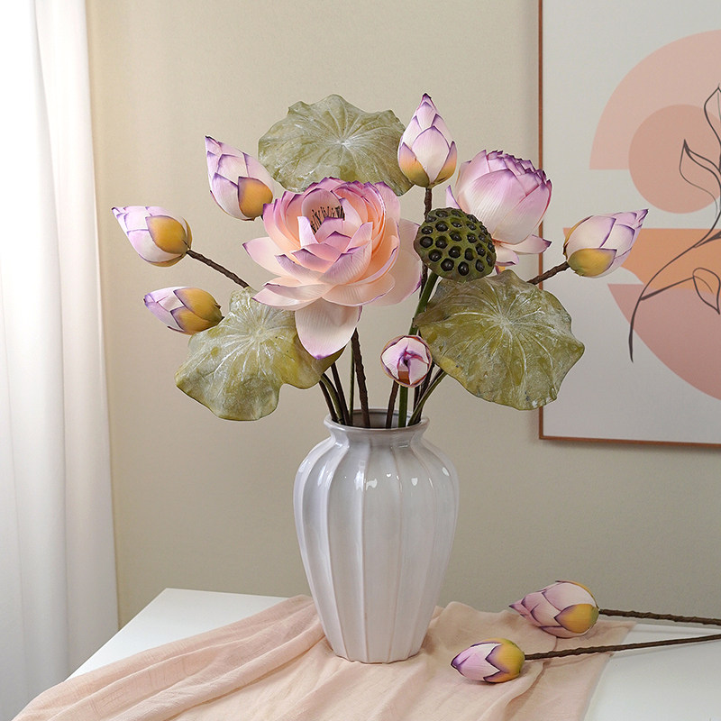 📚 芸雅荷花仿真花新中式莲花假花摆件客厅插瓶摆设禅意荷叶装饰道具