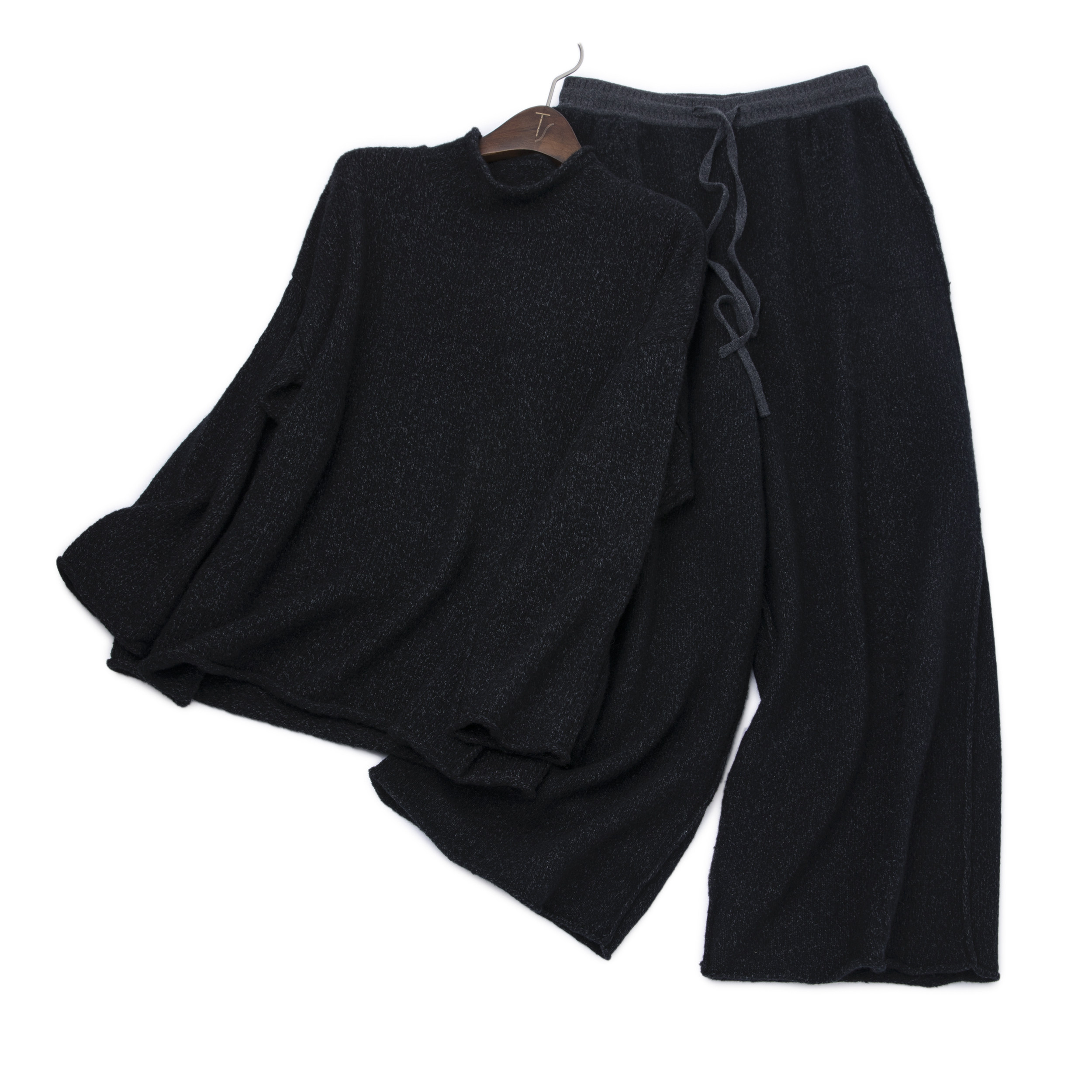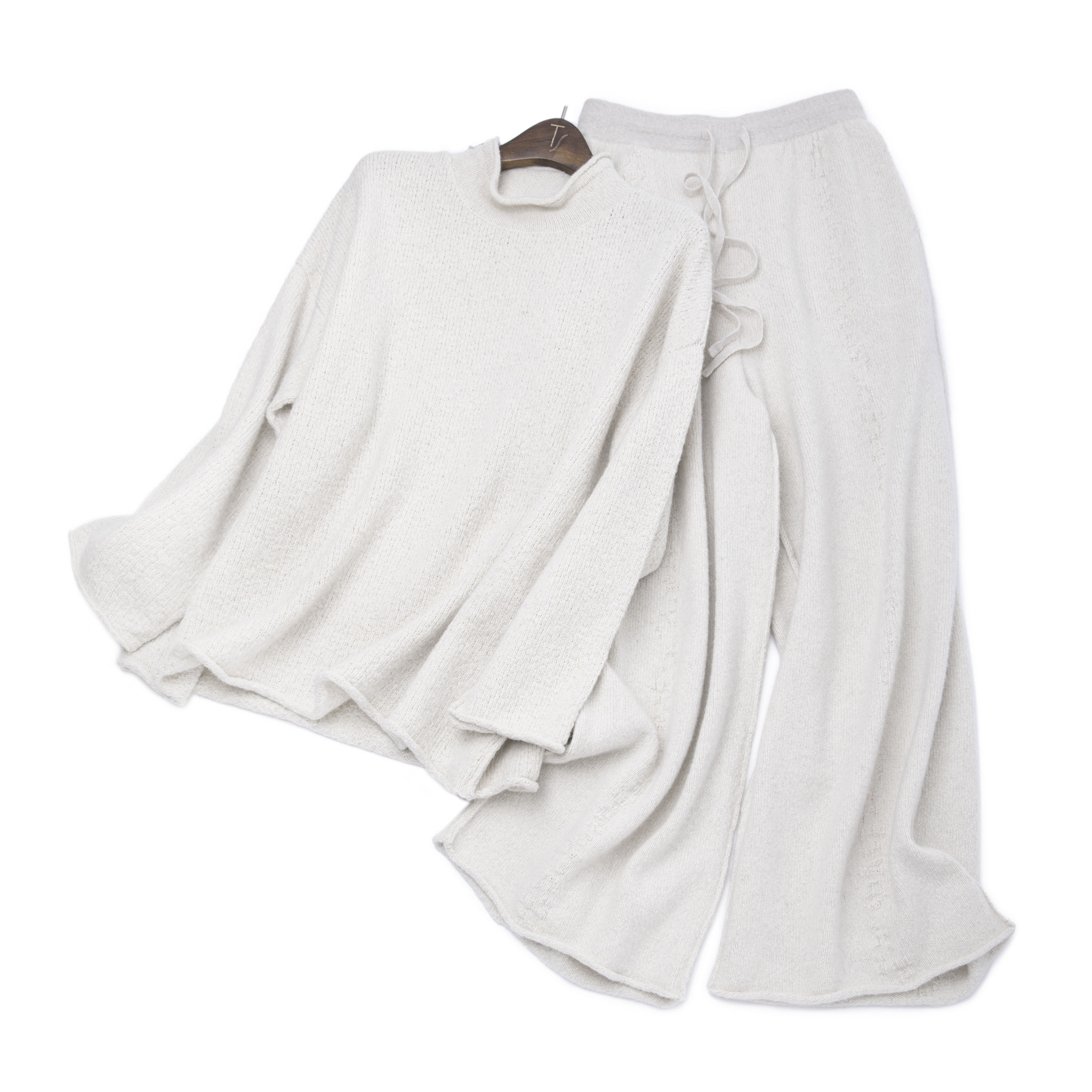 📚 LEMAER乐玛尔 意单CASHMERE重磅半高领套衫&休闲阔腿羊绒裤套装
