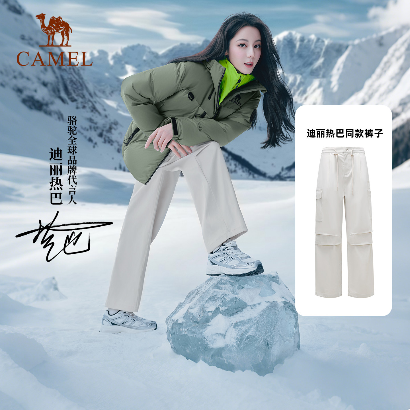 📚 [迪丽热巴同款]骆驼伞兵裤女户外工装休闲裤阔腿高腰弹力抽绳束脚
