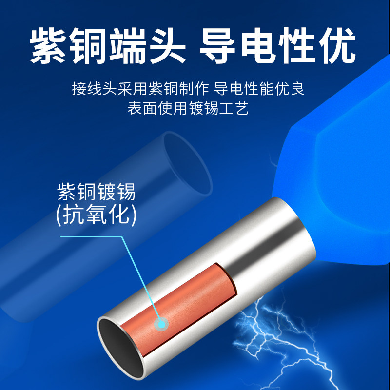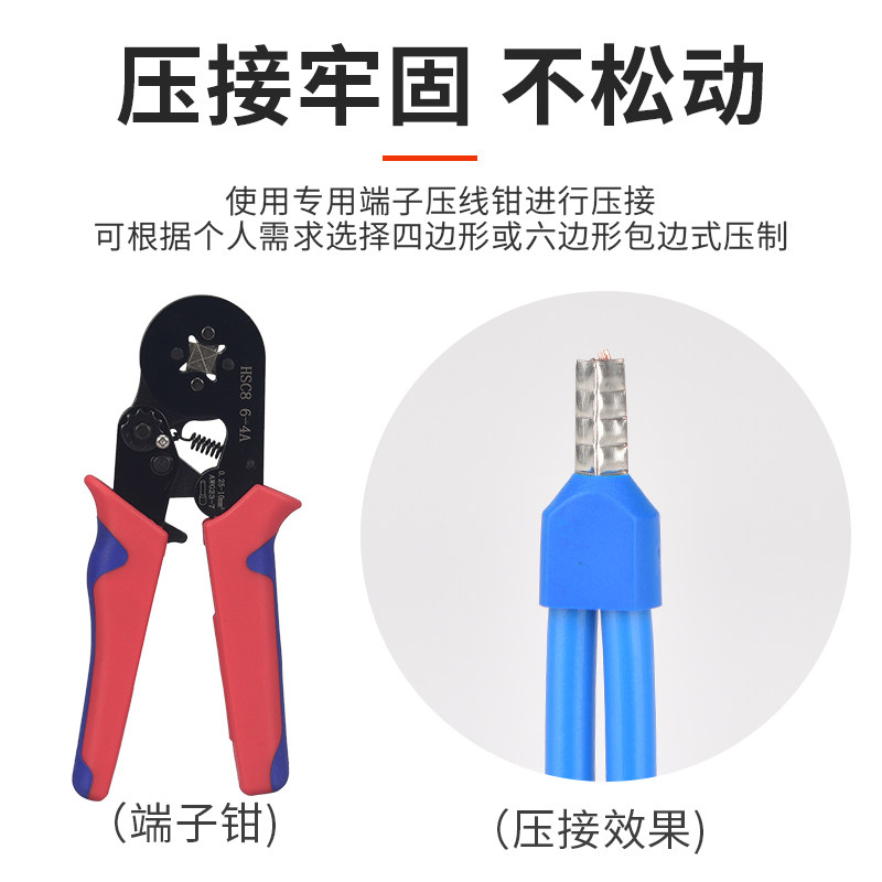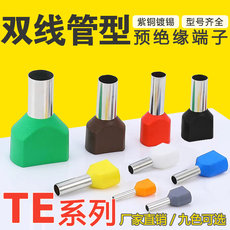 📚 TE双线管型预绝缘端子欧式针型管状冷压接线端针形压线铜管100只