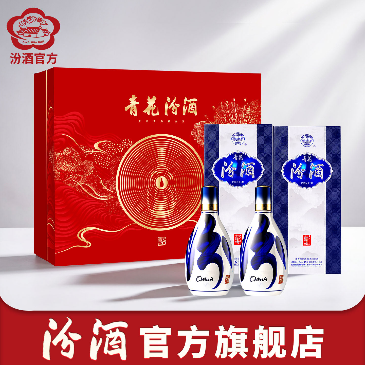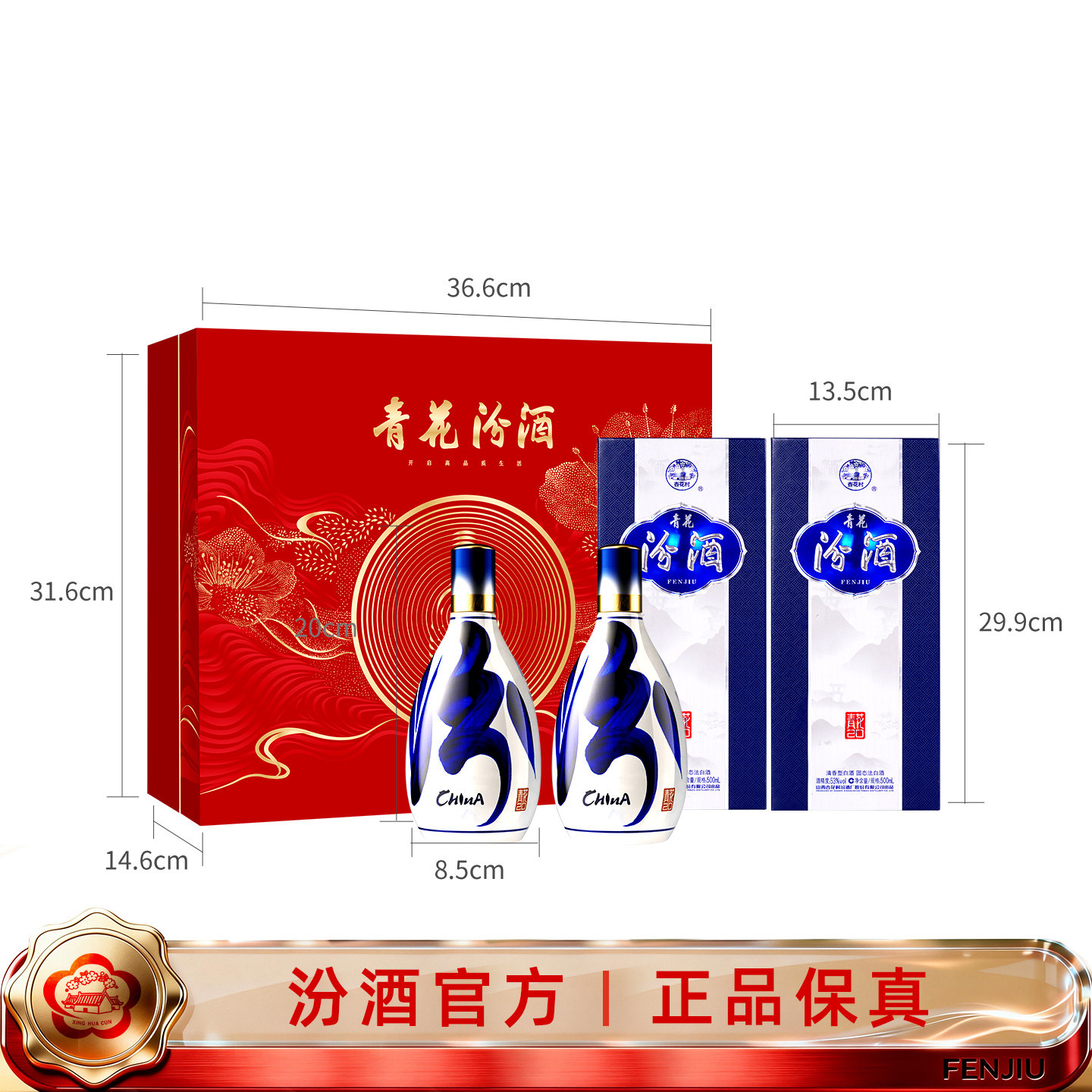 📚 山西杏花村53度汾酒青花20汾酒500ml*2双瓶装礼盒白酒礼盒送长辈