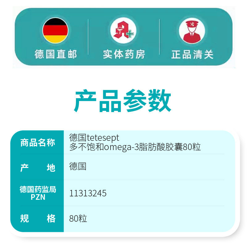 📚 德国tetesept多不饱和omega-3脂肪酸鱼油胶囊80粒 德国进口