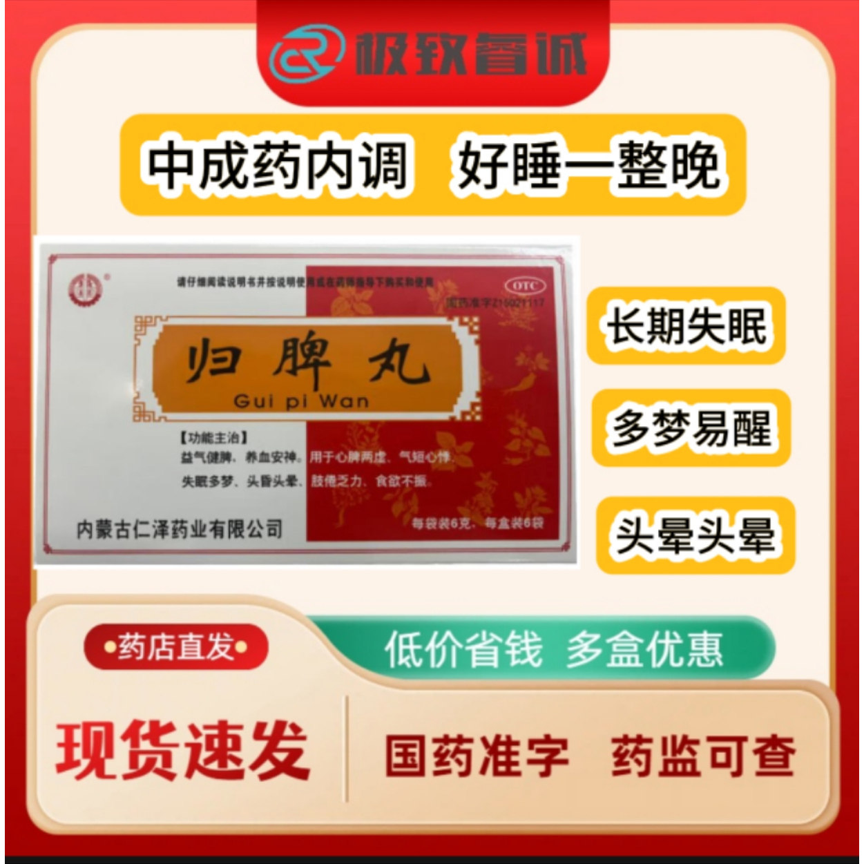 📚 集药归脾丸6g*6袋/盒 正品官方旗舰店失眠养血仁泽药业院线品质