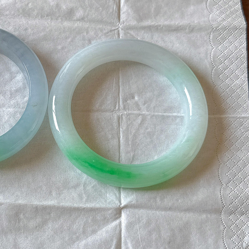 📚 仟喜梵"雨湿杏花”高端缅甸翡翠玉手镯子女款白底青冰透飘花处理