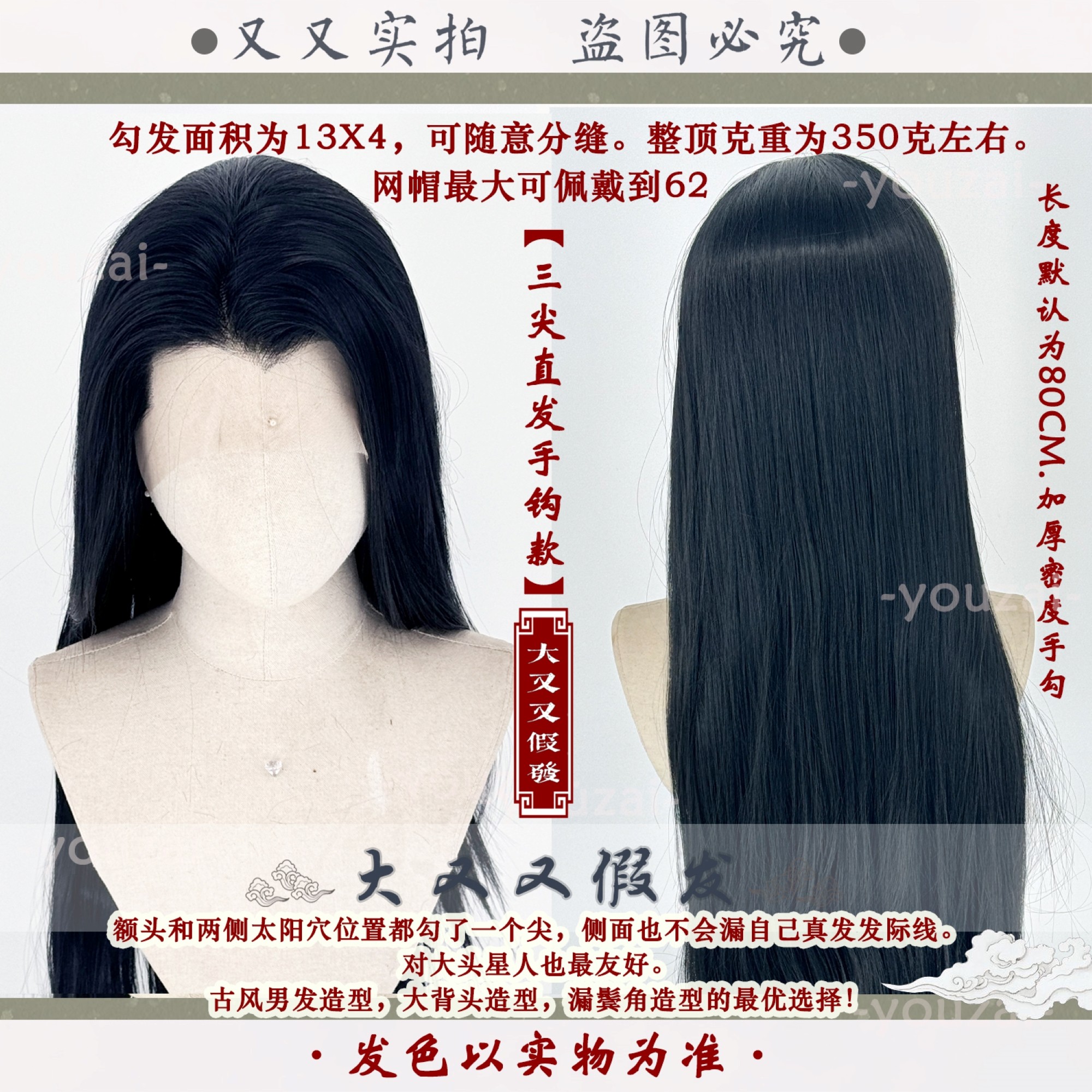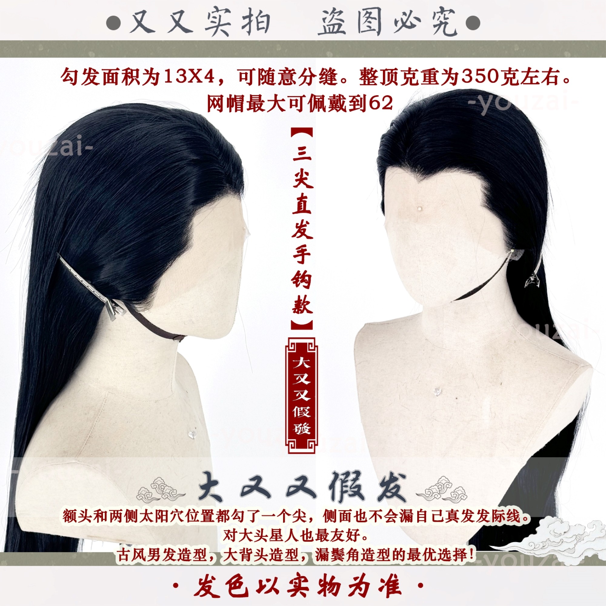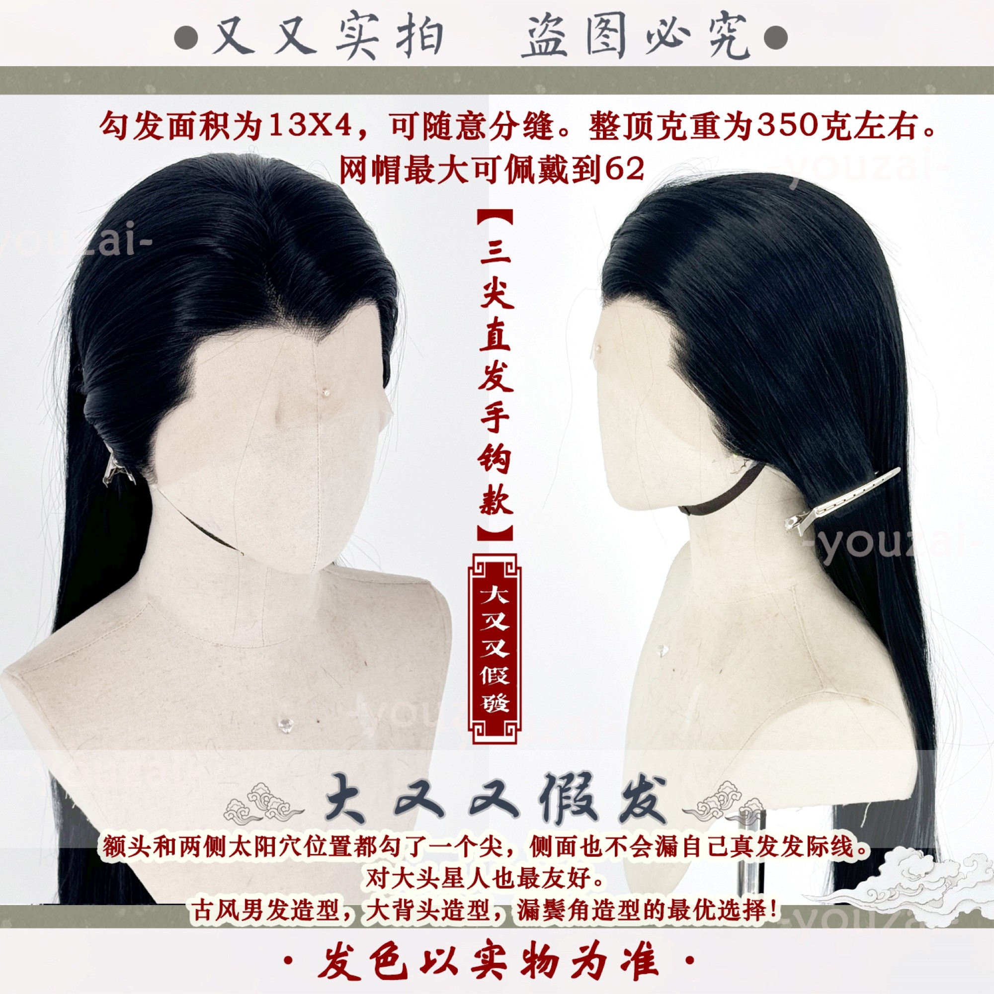 📚 [大又又]前蕾丝手钩毛胚万用古风汉服长直多色黑圆单三尖cos假发