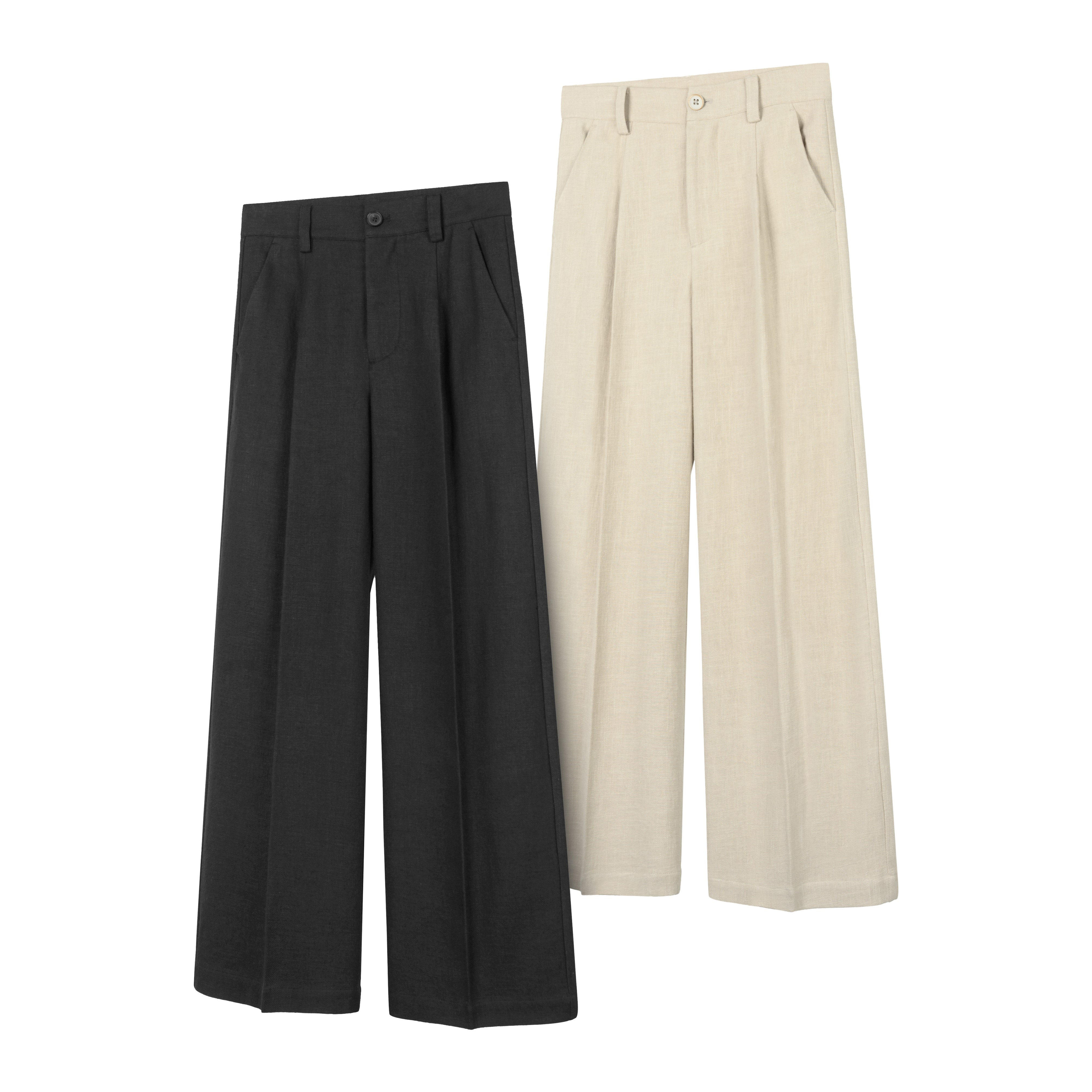📚 DESERTO 70亚麻混纺奢品老钱风棉麻褶位A字型烫线透气西裤休闲裤