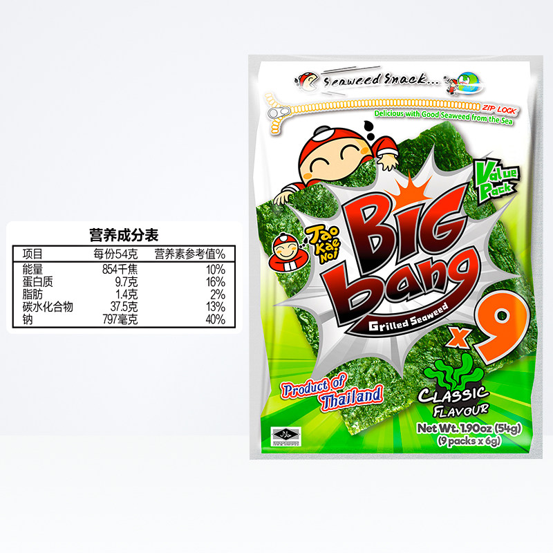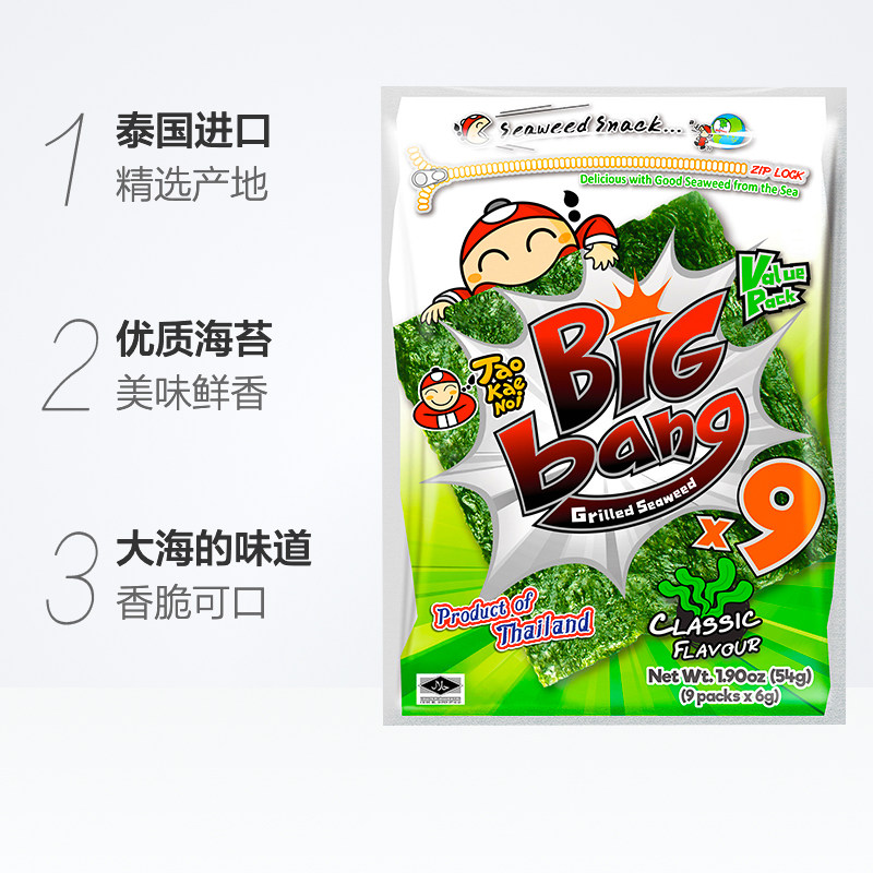 📚 【陈哲远代言】泰国老板仔海苔原味大片脆烤海苔即食紫菜儿童零食
