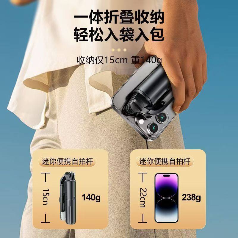 📚 迷你胶囊手机自拍杆2025新款便携式360度旋转手持通用华为苹果演唱会拍照vlog拍摄蓝牙专用旅游自拍神器