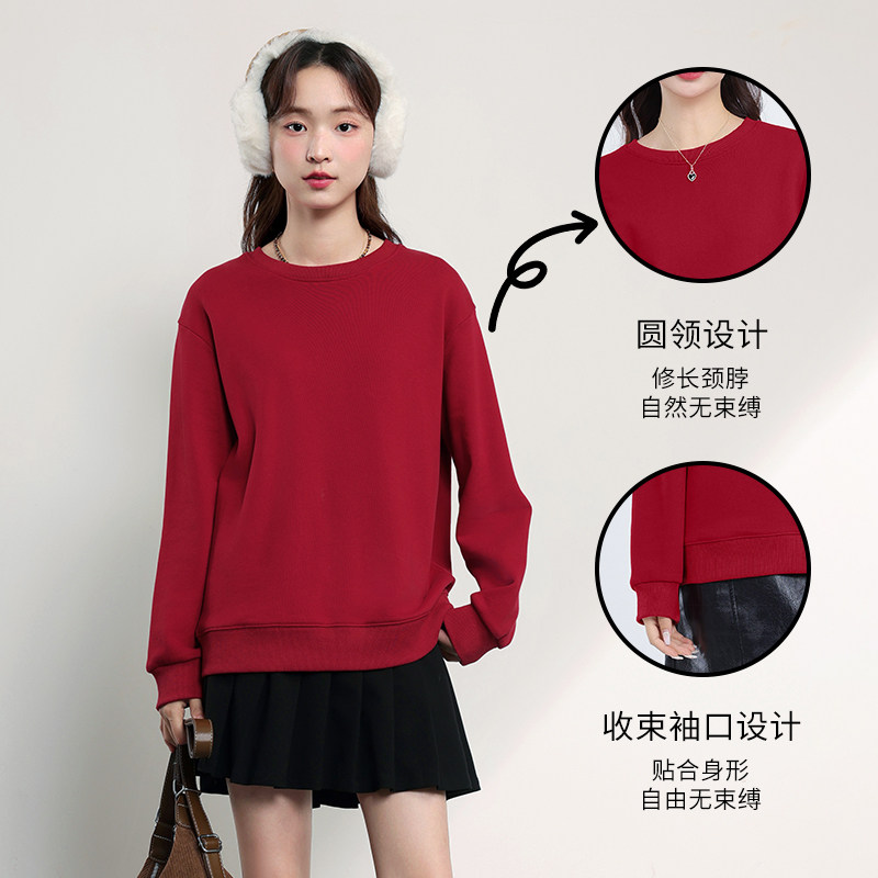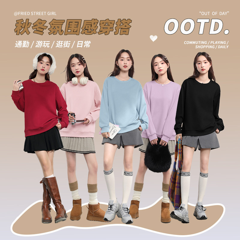 📚 回力紫色加绒卫衣女2026秋冬季新款爆款圆领无帽初中生小个子外套