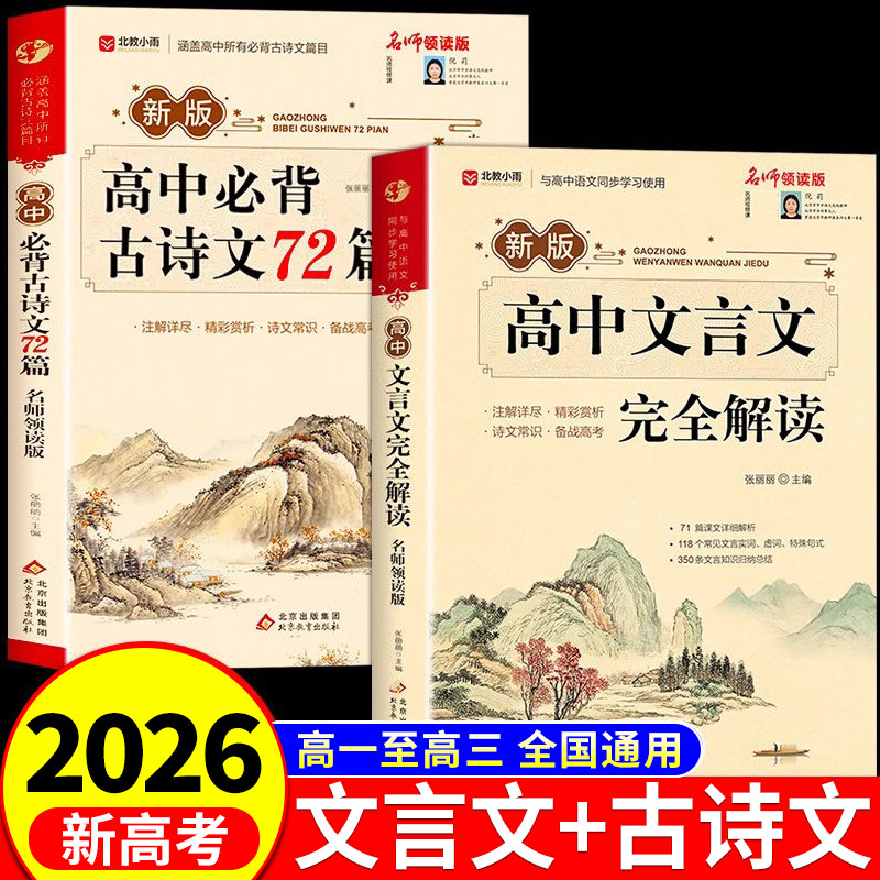 📚 2026高中文言文完全解读+古诗文72篇注释及赏析全解一本通配套人教版2025高中生必背古诗词和文言文高一高考语文专项训练必刷题备