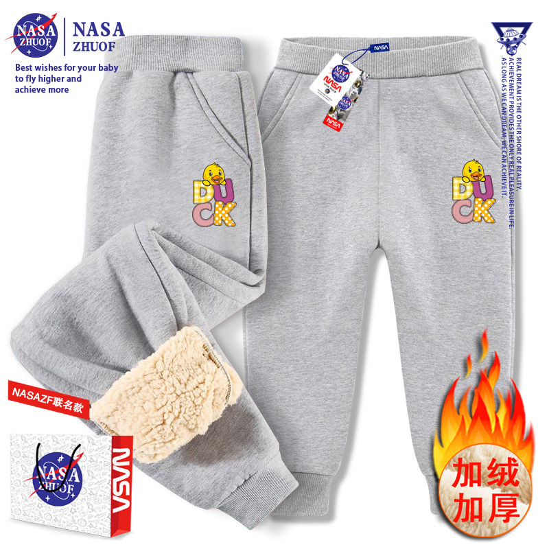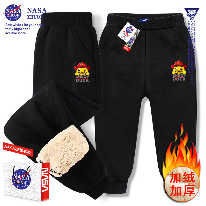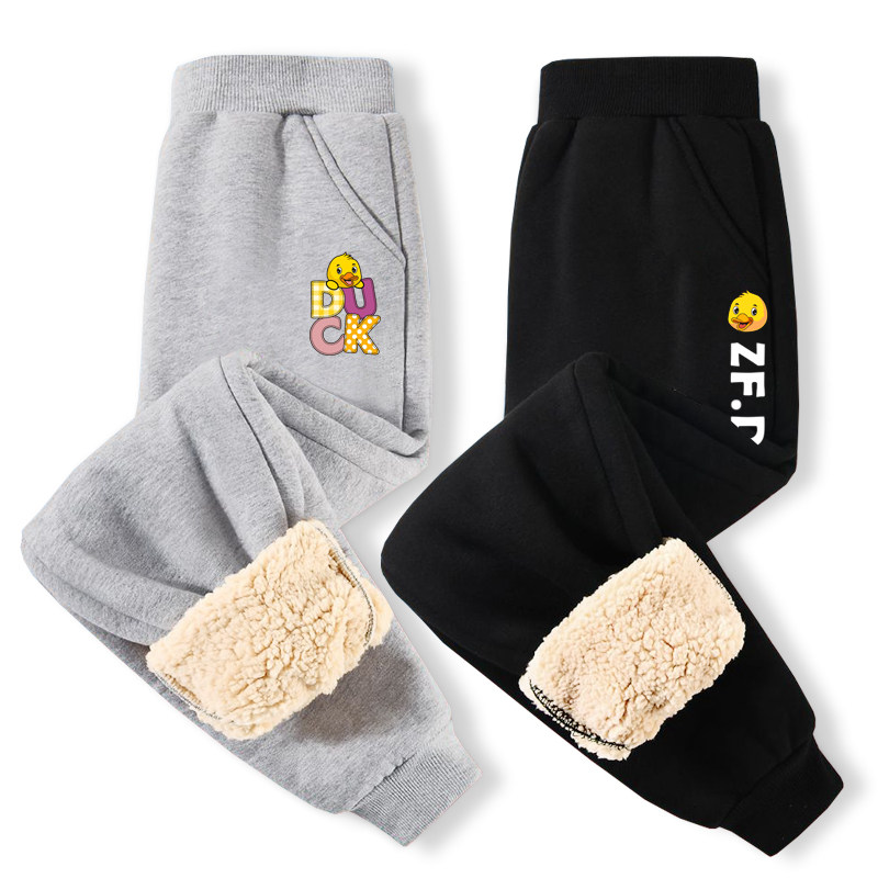 📚 小黄鸭儿童加绒裤子2025秋冬加厚羊羔毛休闲男童卫裤女童保暖棉裤