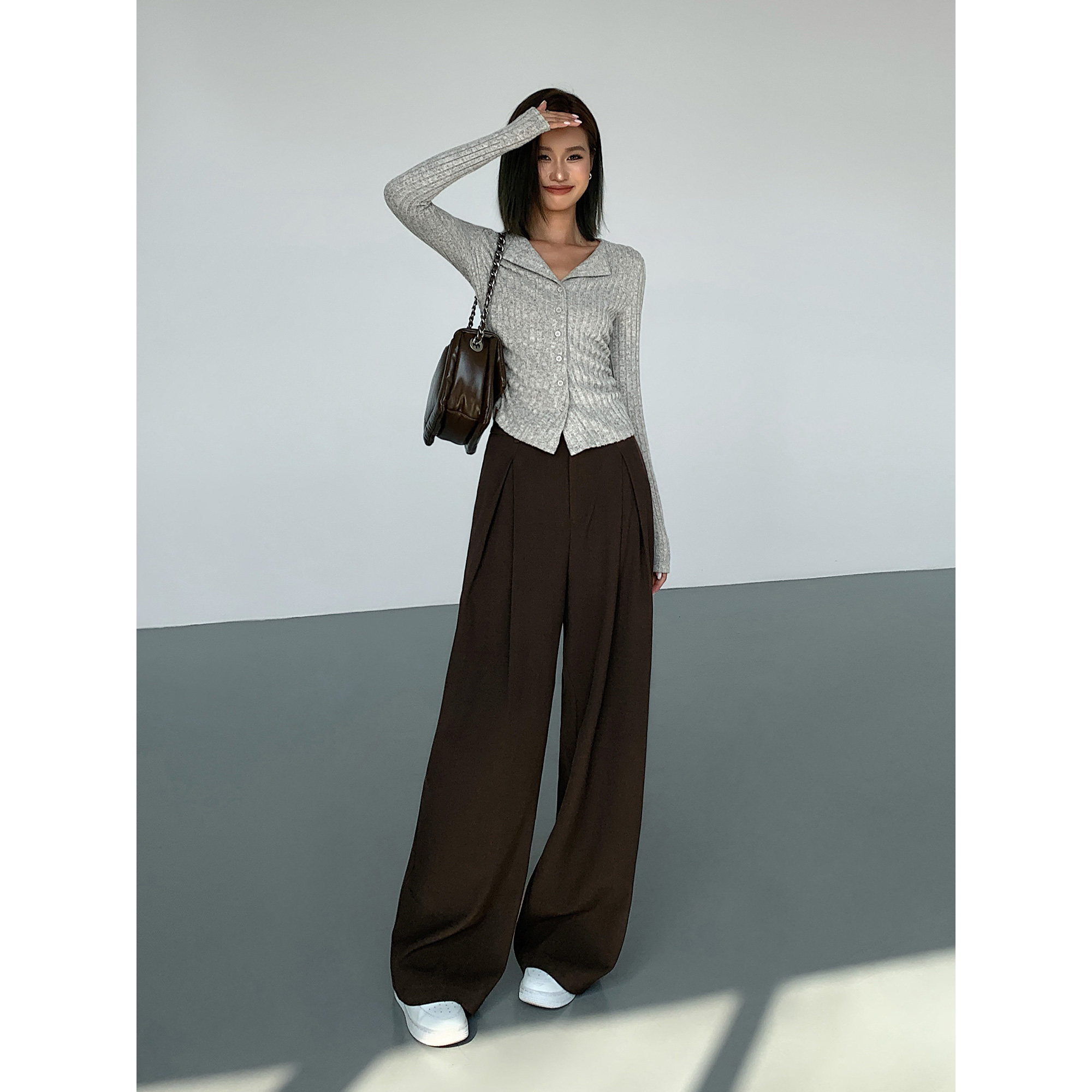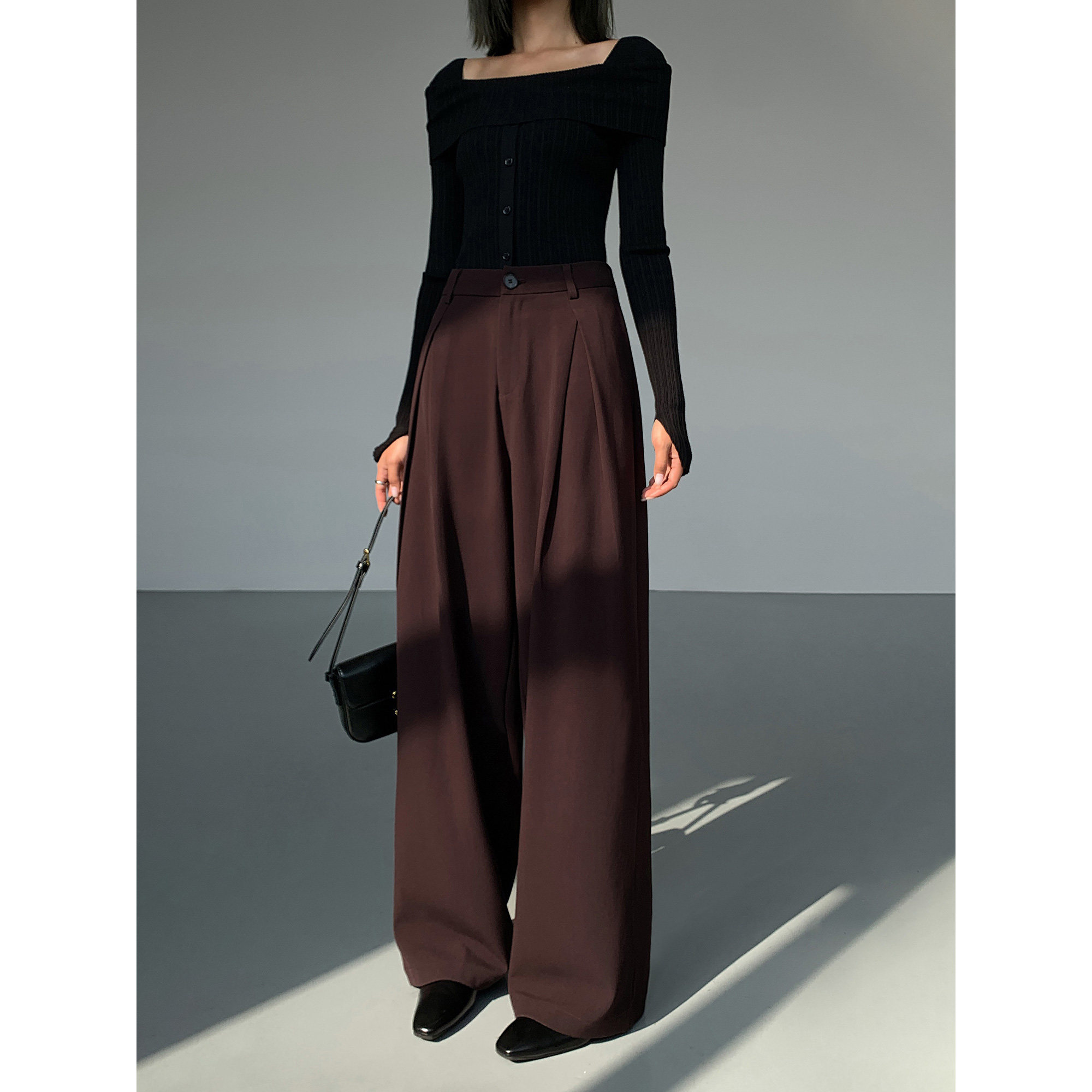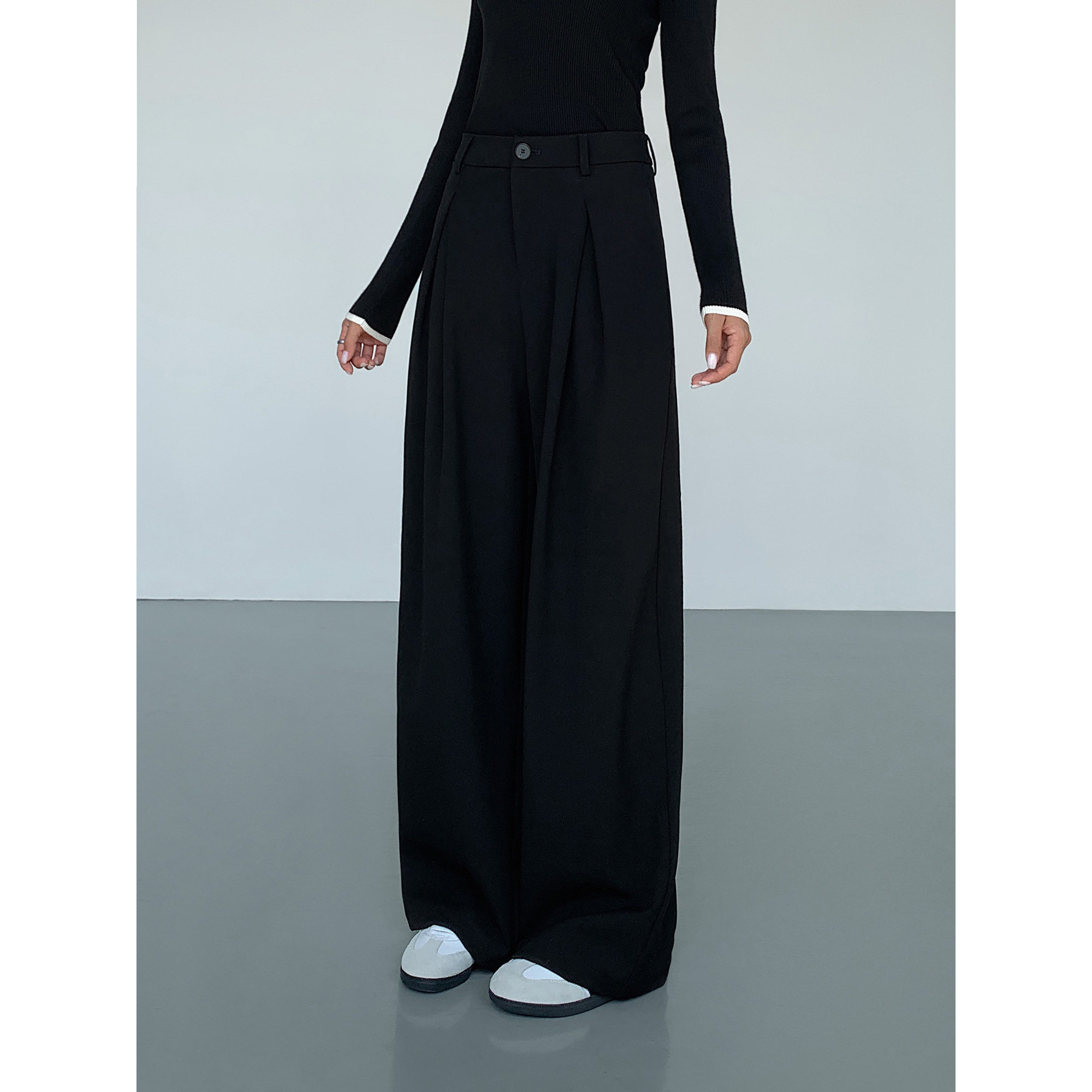 📚 ousph【现货3折】黑色宽松西装裤高腰显瘦高级感直筒垂感阔腿长裤