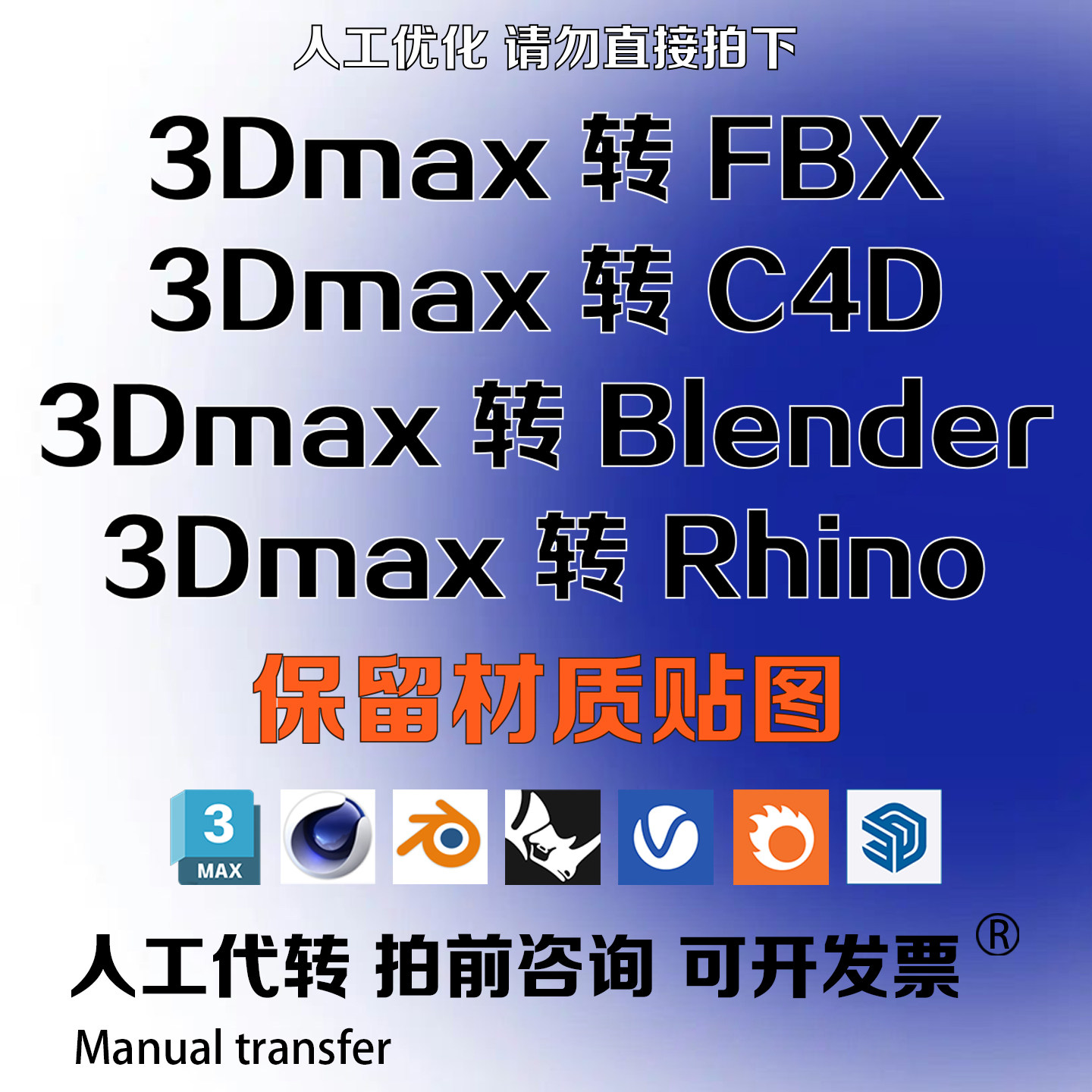 📚 3DMax转FBX/C4D/Blender/Rhino犀牛保留贴图人工代转SU转MAX